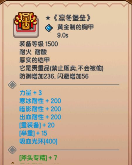 在此说明,本篇所写为“实用”黑星,即必备神器,并非黑星大全 我还是想说一句,别问我什么职业能玩,什么职业该怎么玩?我的其他攻略明明都写了,还问我做什么?我也没有多少时间啊 贤者头盔:看清透明怪物 黑暗破坏神(黑破):前期近战神器,具有时停效果,也经常被称为时停剑(我的黑破是残次品,好的是+7速度) 地点: 找最上方的工匠,贤者要55小奖章,黑破要65小奖章 (工坊中随机刷出,每日刷新一次) 疯狂之