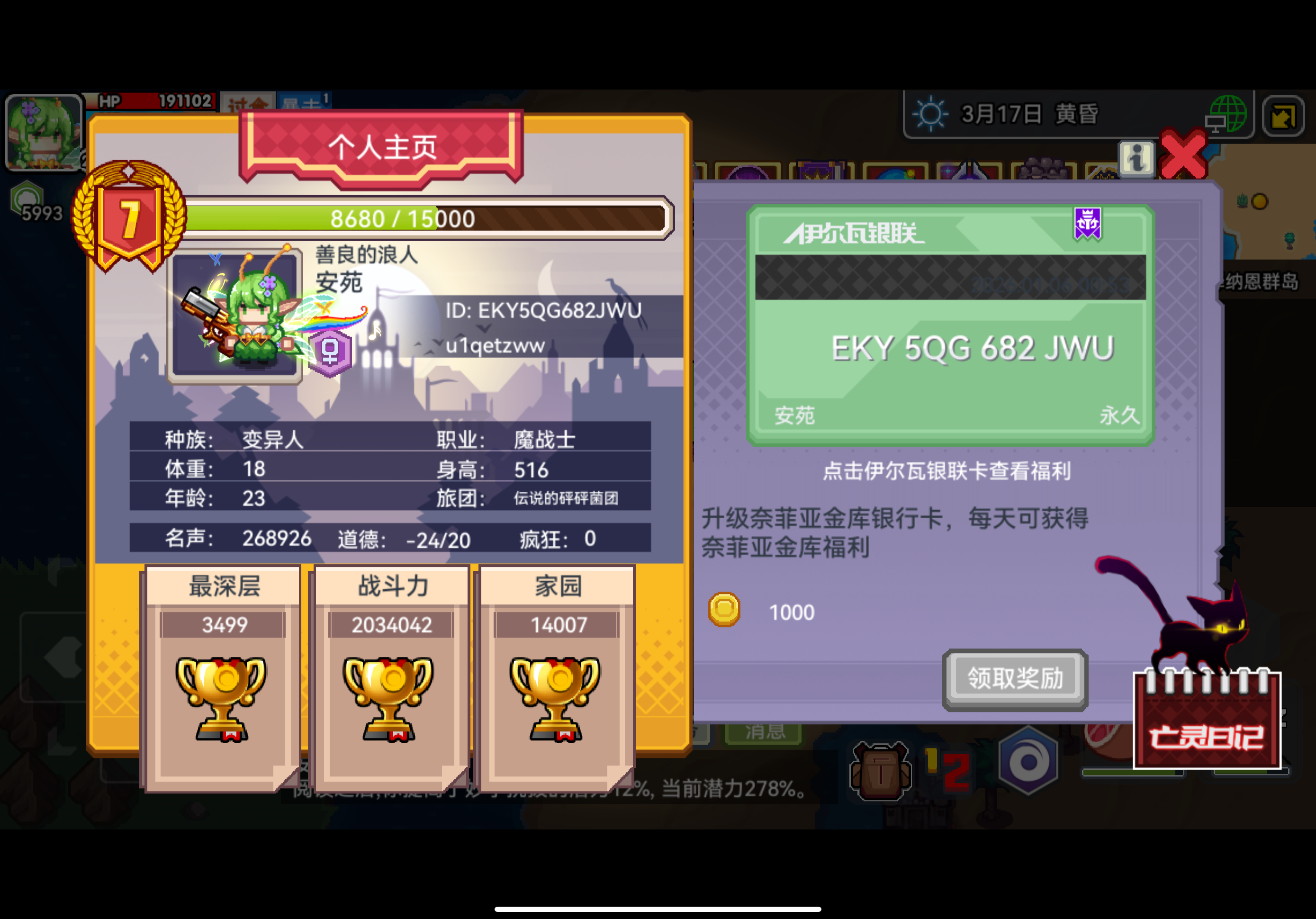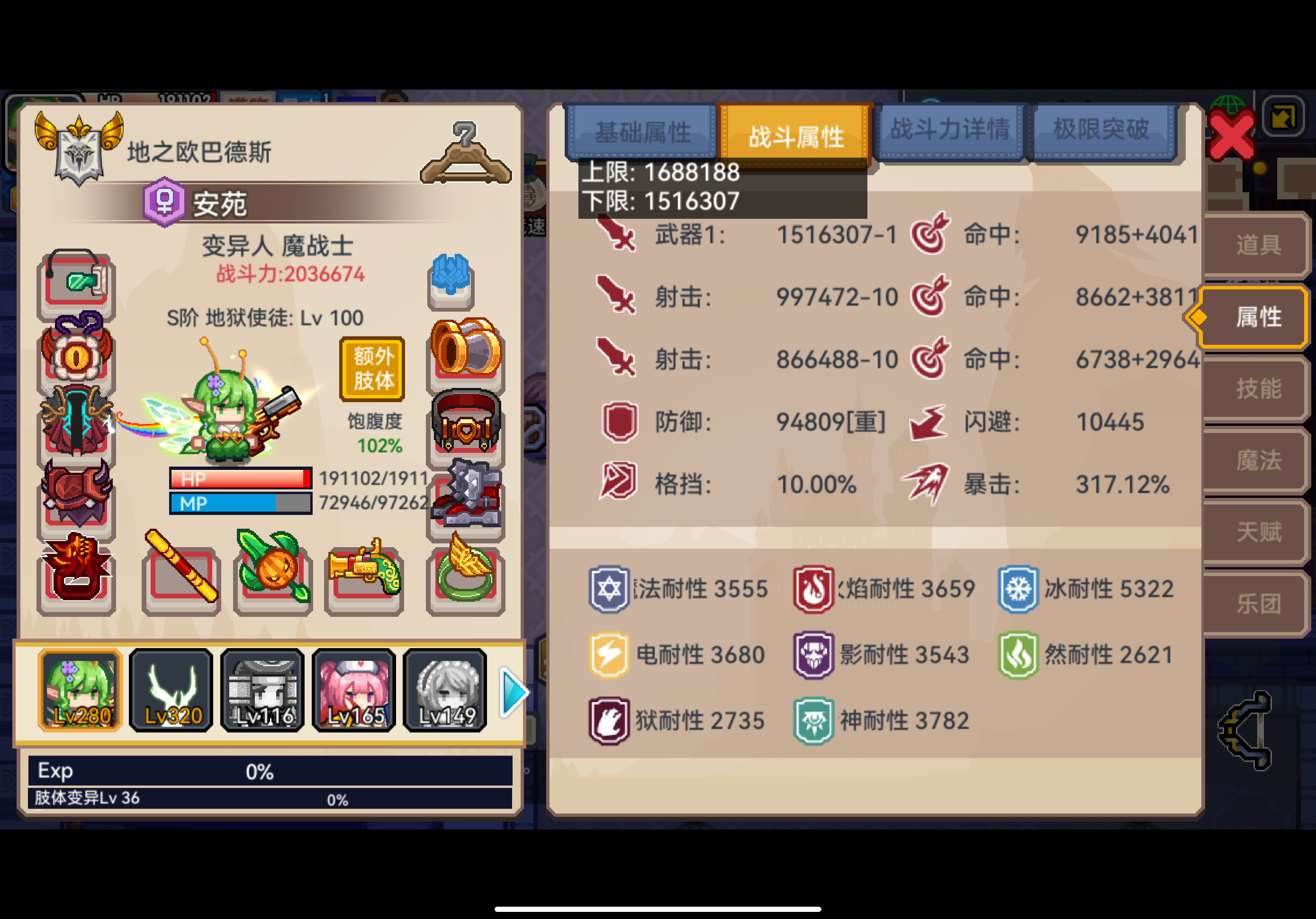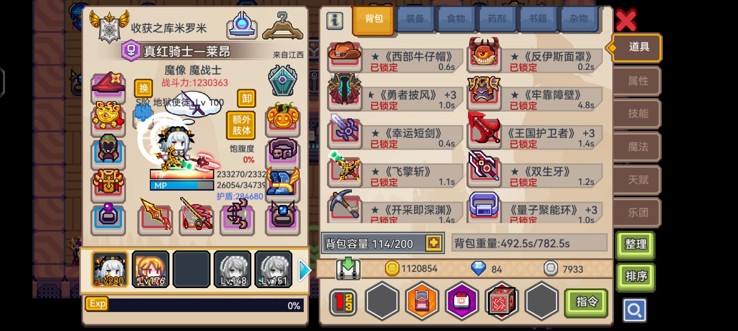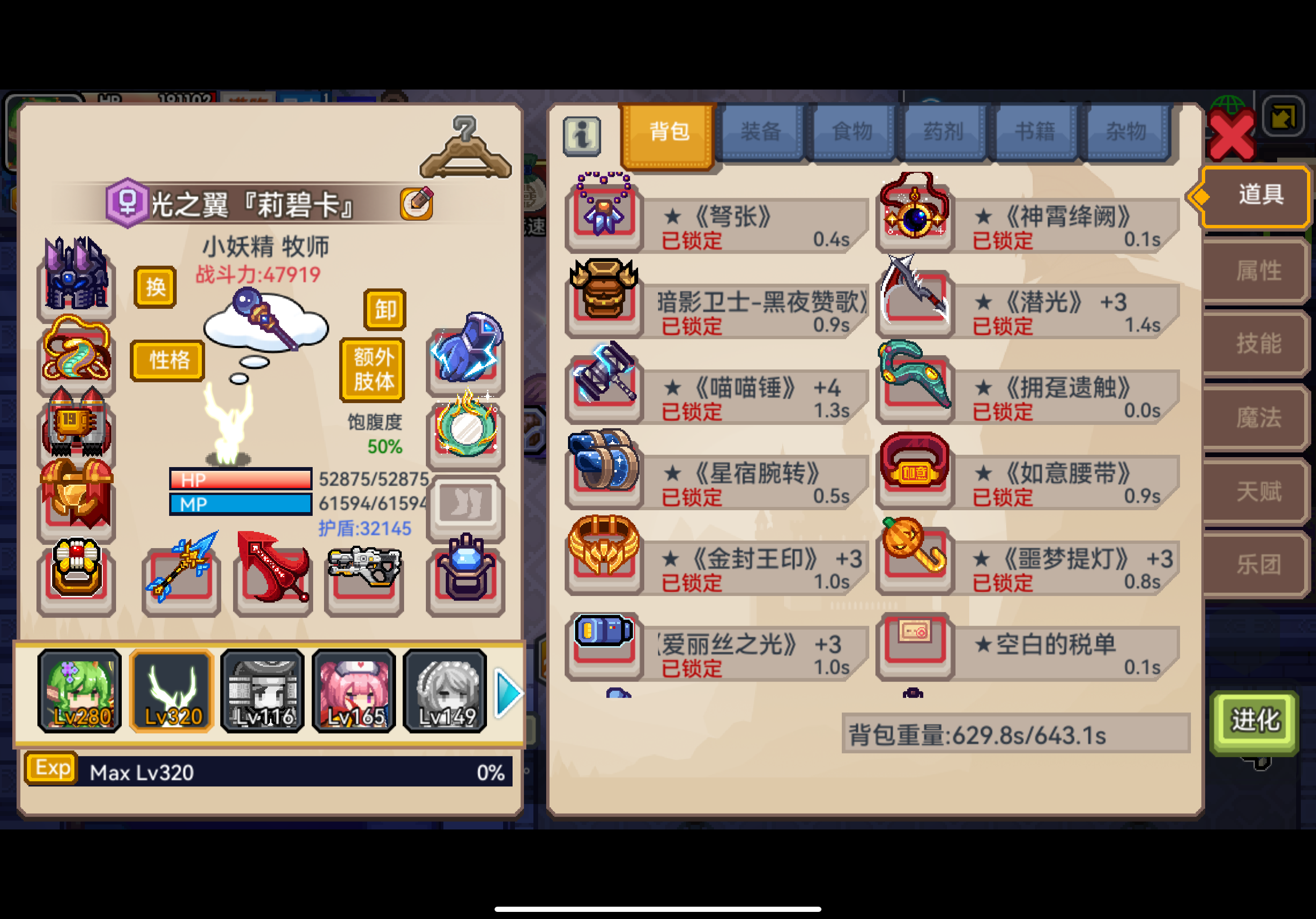 抽了神器抽了个枪和三尺,目前耐性吃满,卡在800层左右,听大佬们改了魔免和物免追击,目前物免50%,魔免38%依旧900层被巫妖螺旋王一脚踹死,秘宝有个3级的星河,也是听大佬换的,能够保底出一个自选,听听建议。#伊洛纳萌新疑