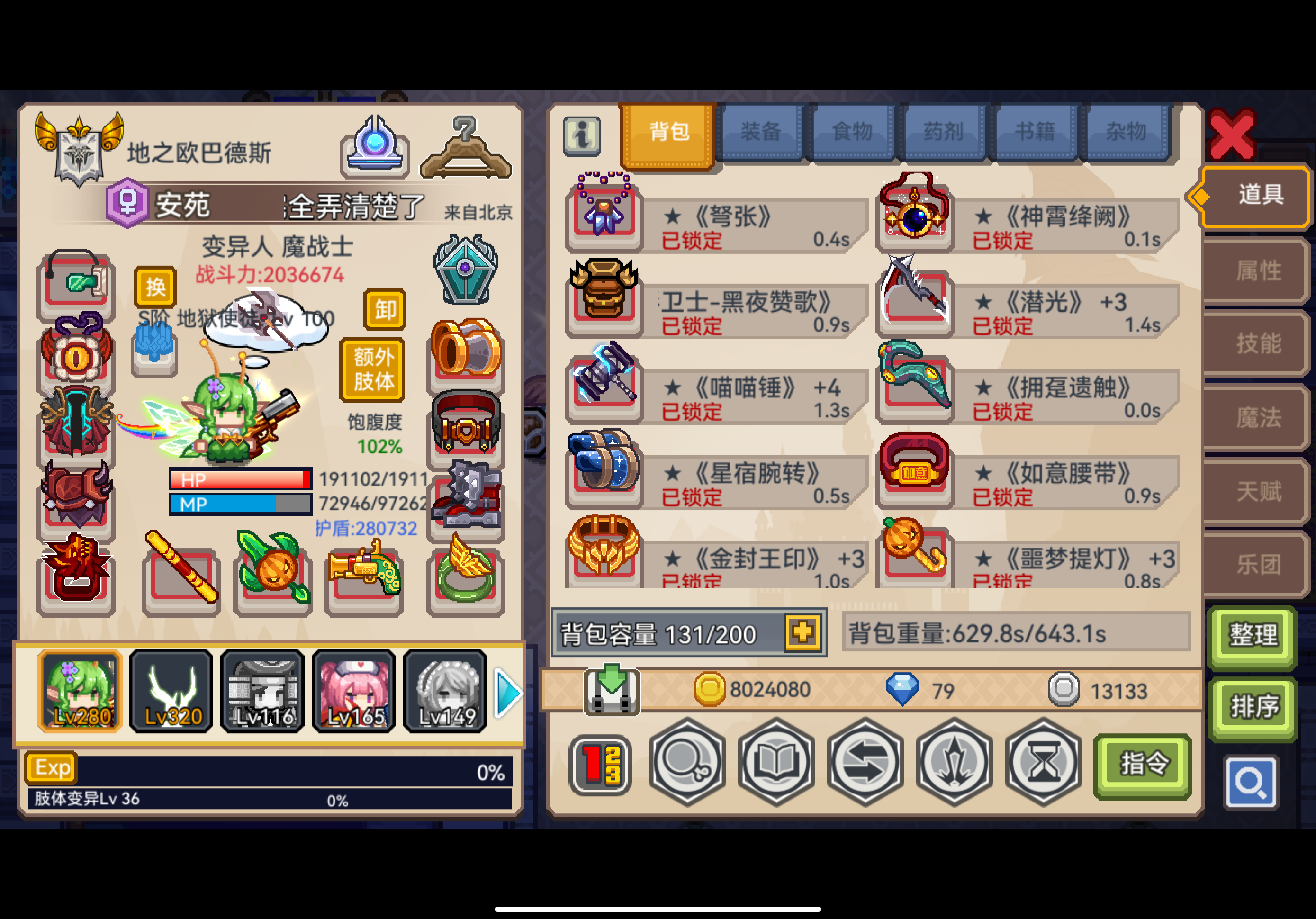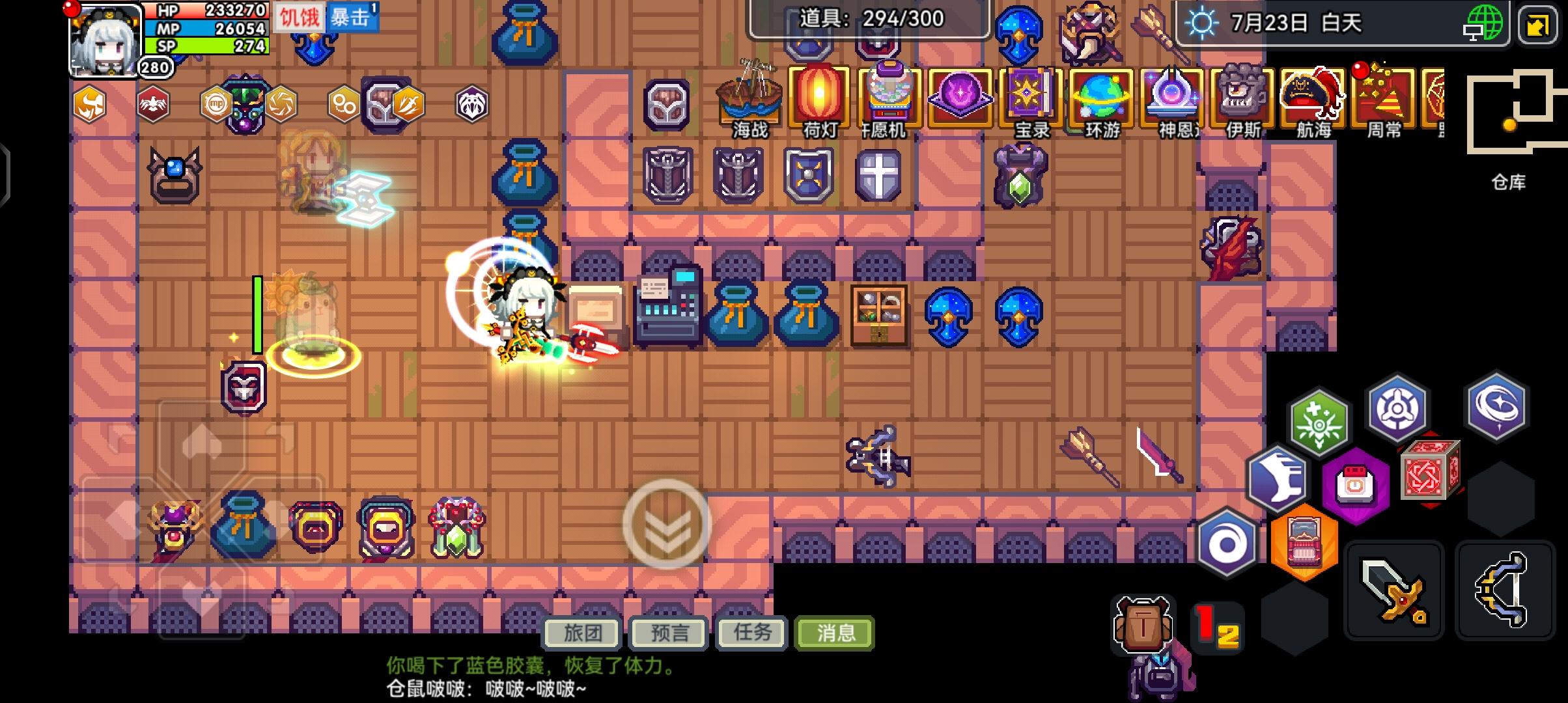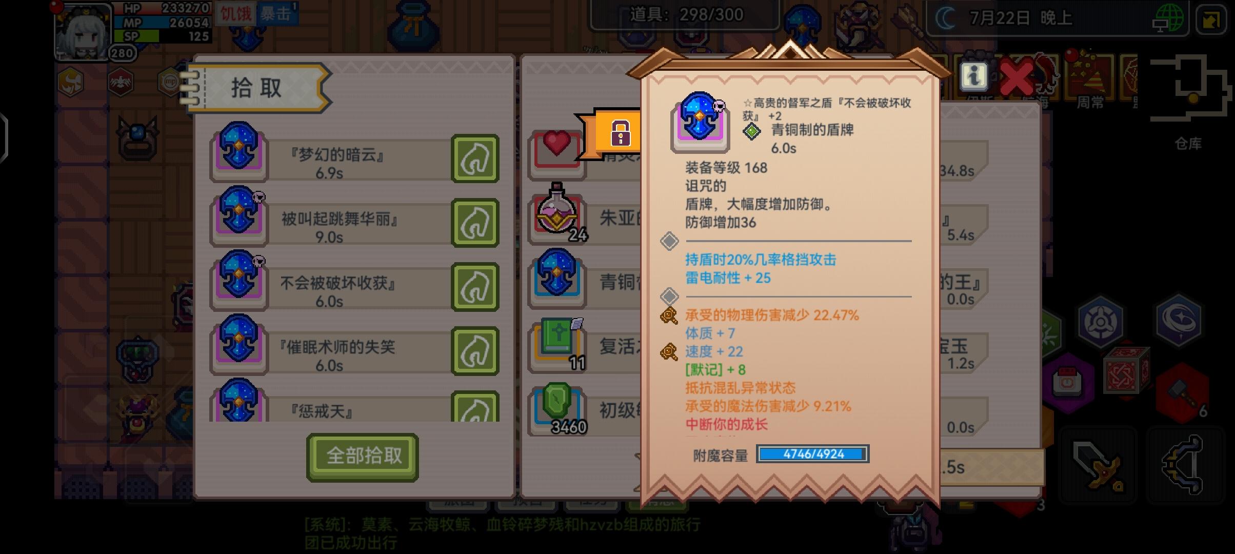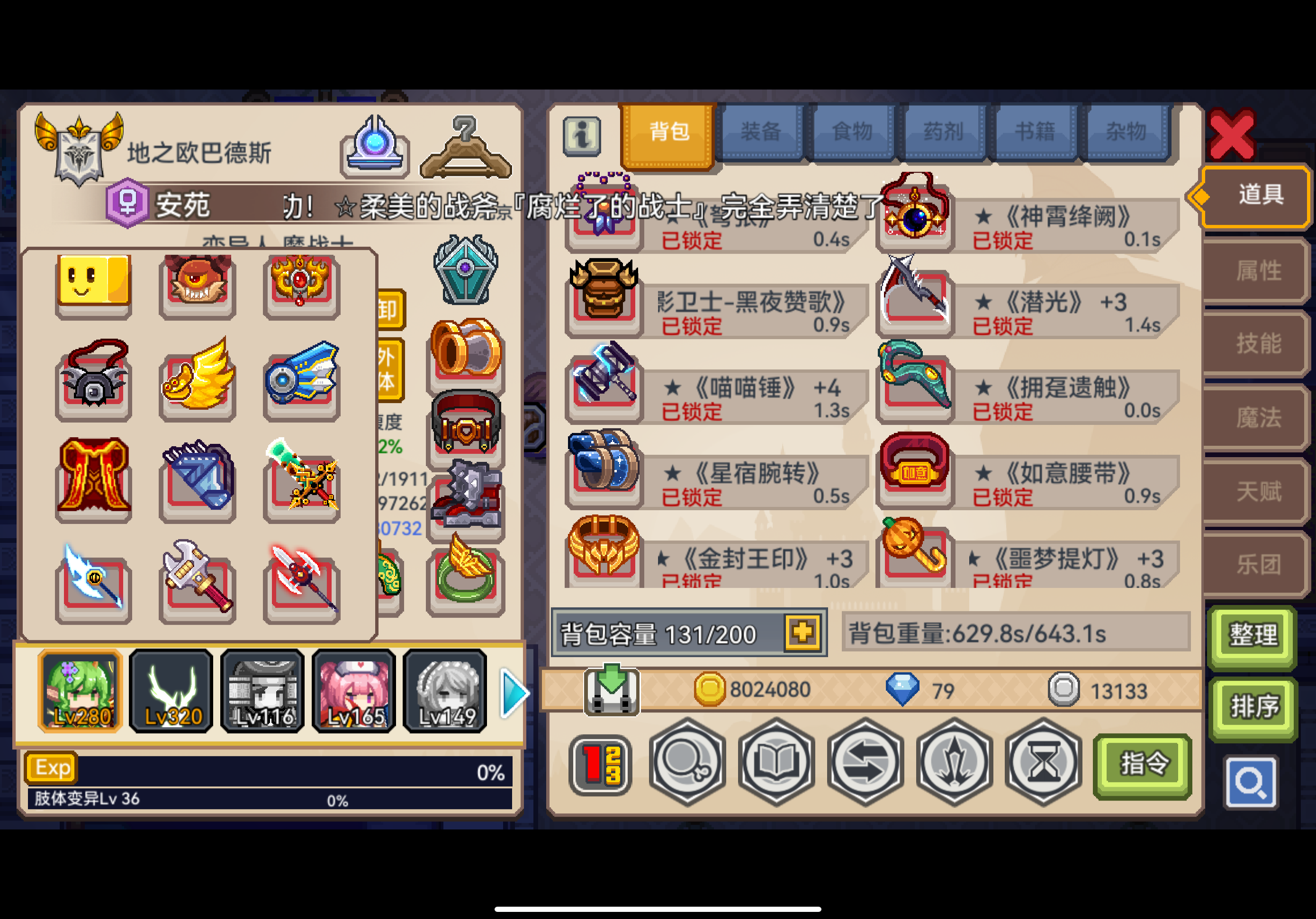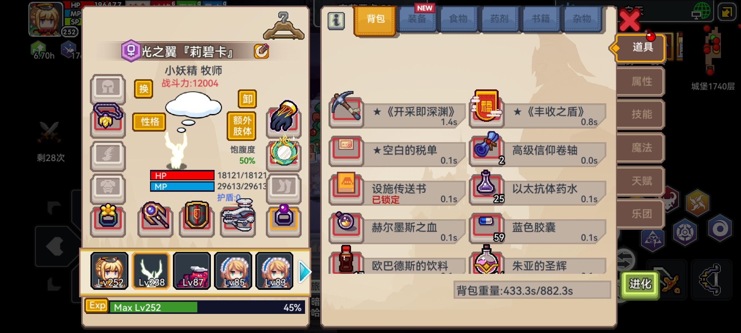 抽了神器抽了个枪和三尺,目前耐性吃满,卡在800层左右,听大佬们改了魔免和物免追击,目前物免50%,魔免38%依旧900层被巫妖螺旋王一脚踹死,秘宝有个3级的星河,也是听大佬换的,能够保底出一个自选,听听建议。#伊洛纳萌新疑