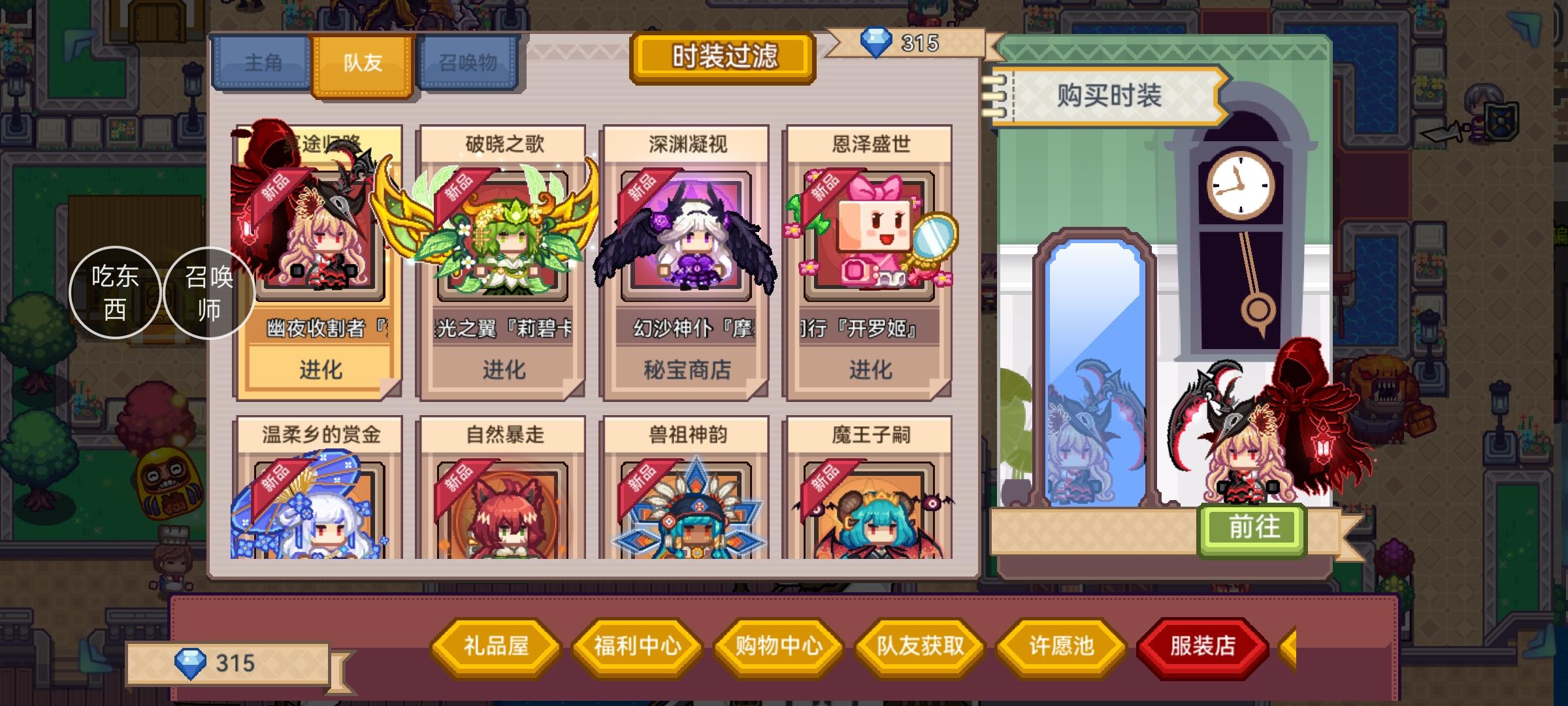 第一个是变身变出来的,后面的特效好好看啊是动态的流苏官方能不能多整点免费皮肤啊看着好看的皮肤真的会玩的更爽第二张是新宠物的进化皮肤,这背后的死神真**帅麻了吧,可惜本萌新选的是召唤师就不抽了这个了(虽然真的很好看)第三个是本萌新现在的样子嘿嘿,虽然还离大佬们还很遥远,但是真的挺喜欢这个游戏的,虽然社区没什么人,但是大佬
