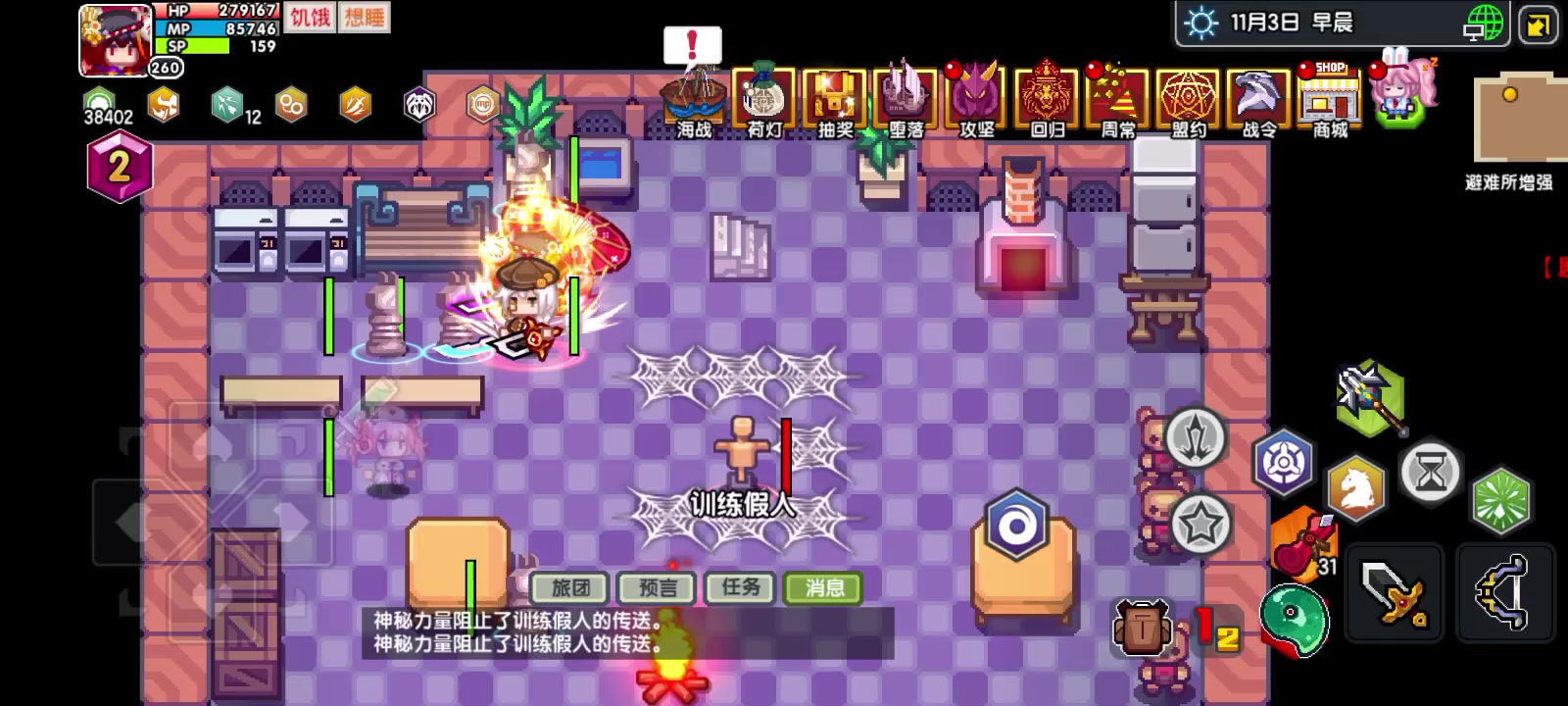大概是使用火枪代替咸鱼的小尝试,感觉吟夏完全搞完以后可能更适合(你们就别用了) 野蛮人大概900绿字,狩猎大概-32红字,不用在意 猫咪的装备给主角穿了一下也能用,3499现在的难度好低啊,什么时候开新层数。