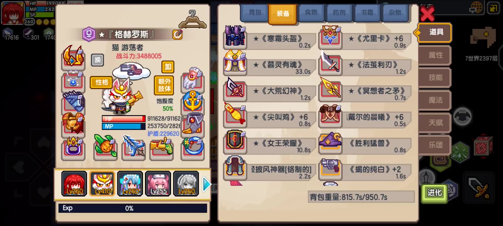 压级不小心升了十几级,摆烂了,战士装备平移。肢体也没怎么和前段时间养爱莉没种族卡了,不能进阶只有一个分身。依旧是四五个回合吧。理论上能到27连击,还有很大空间,供大家参考。