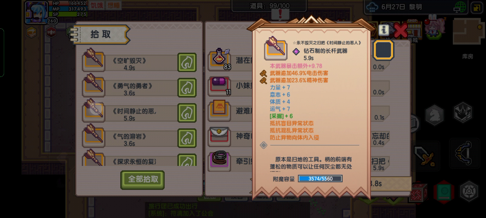 操作有点问题,实际上挂上神圣之握,隔一格距离,时停期间打怪,快结束时停重新堵上墙就方便多了。 百分比扣血的就是牛,但限制也多,只能欺负欺负老版本的怪,打了几层,碰到深渊巨人,完全挂不上。主要还是限制下回血,3000亿血以上的怪,打到40~50这区间,一回合70亿回血量,10回合打个100亿伤害,时停结束,一刀就触发,那就能实际30亿压下去,两刀触发反而回40亿血,这样来来回回就压不下去了。