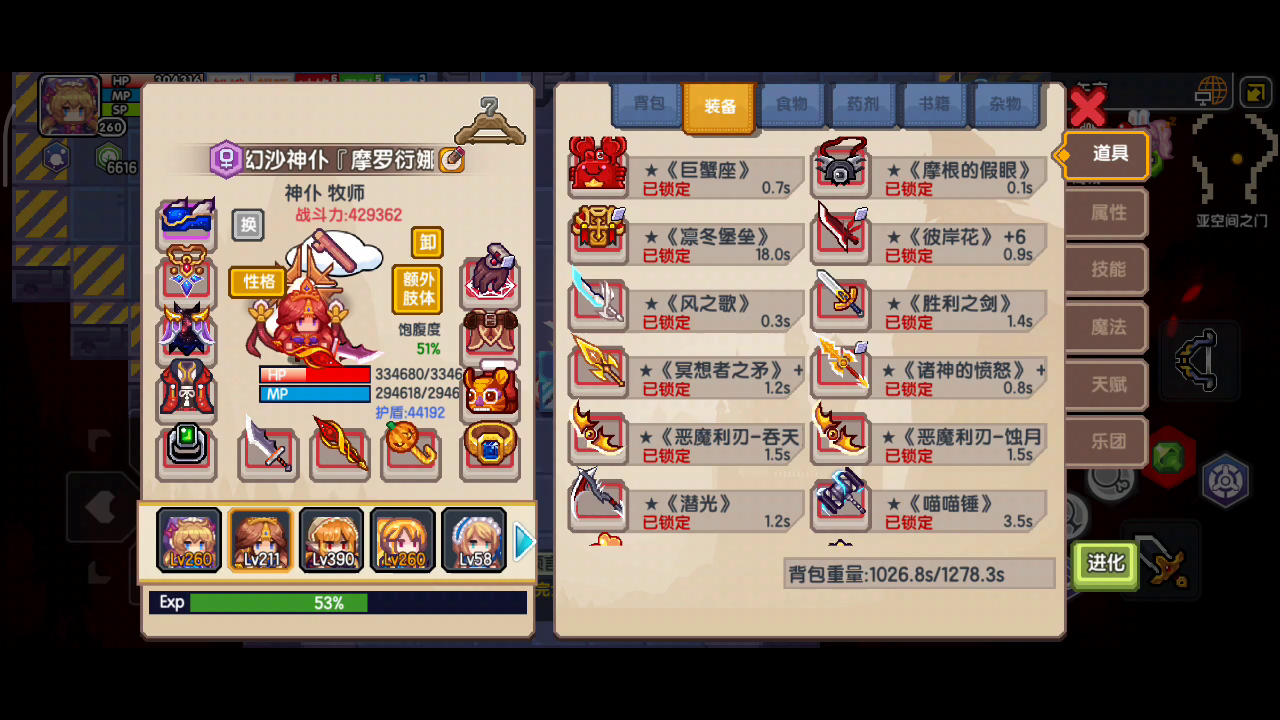 基本没怎么改的幻沙,一路杀到61杀不动了,被杰哥aoe带走了,或许控制好距离,让幻沙在后面不吃伤害可以杀穿也说不定