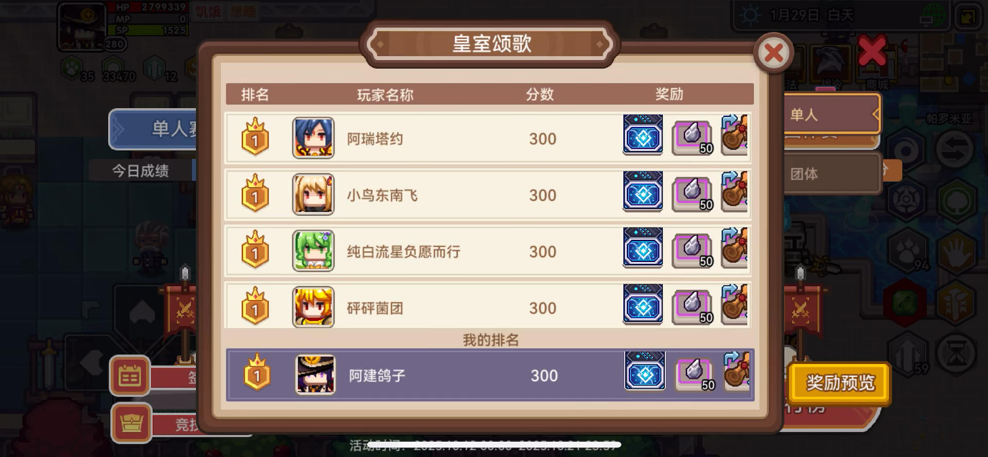 终于打完了,真是又臭又长啊[表情_尬笑]。本来想大两组团战的,看了看这辣鸡奖励不值得我花钻石