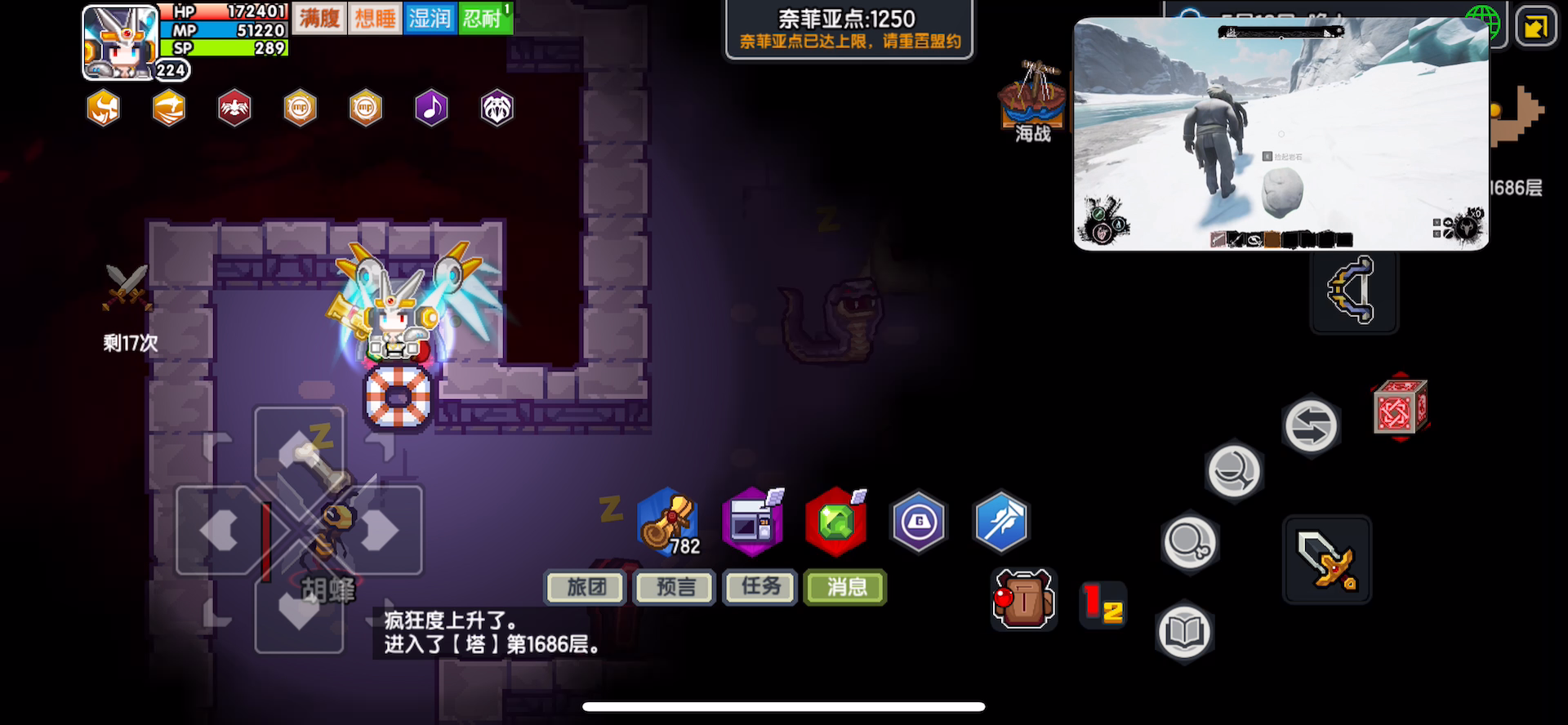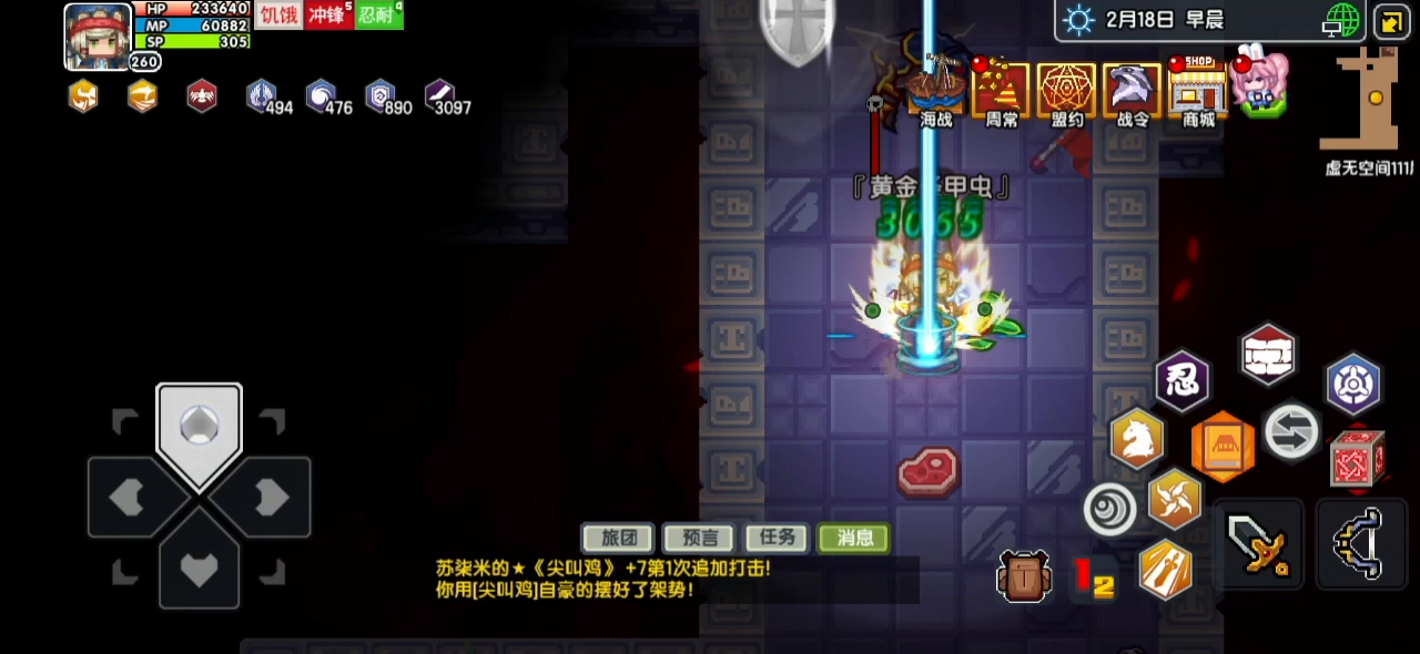 这个地宫是物理与魔法怪比较均衡的地宫,我的真免不够还是有缺点的,开头挑战了下物理地宫,结果进去刚挂机就和怪物对a暴毙了(不亏是拿着杖与剑的近战法师,就该狠狠的砍)。血量一上一下的吓人,不过这很正常,地宫里的怪物都有无视蓝量的贯穿伤害。