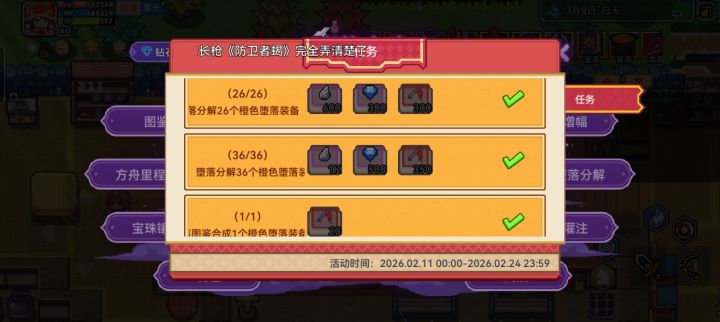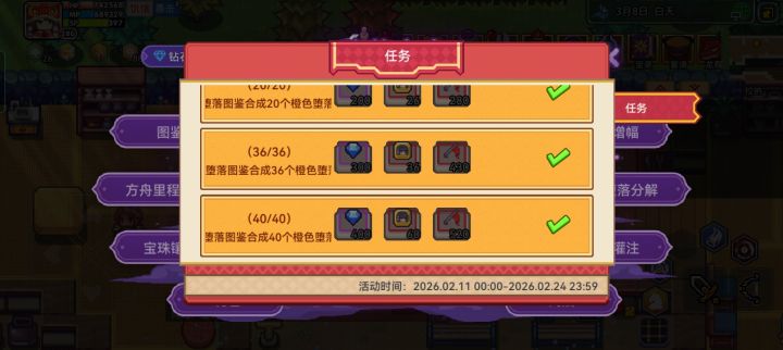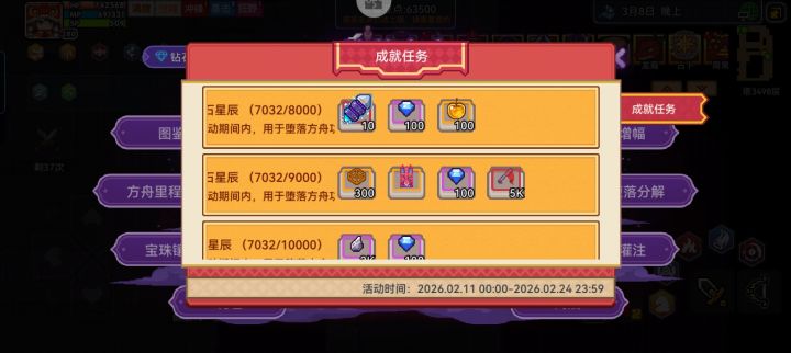 总结一下萌新活动须知1.每天刷满30次特殊地宫2.刷出来的低于2000级的黑星宝珠分解掉3.打出来的橙装一定要捡,并且分解掉4.分解出来的橙装一定要拿着碎片优先兑换堕落信标(入场券)5.分解得到的橙装碎片足够了就合成装备并且再次分解,足够多的装备可以左脚踩右脚合成,通常在活动结束前两三天可以大量左脚踩右脚合成(仅限萌新,老登自便)6.不要去用钻石提升宝珠,等级不满的属性不满提升就是亏!