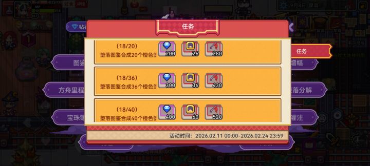 总结一下萌新活动须知1.每天刷满30次特殊地宫2.刷出来的低于2000级的黑星宝珠分解掉3.打出来的橙装一定要捡,并且分解掉4.分解出来的橙装一定要拿着碎片优先兑换堕落信标(入场券)5.分解得到的橙装碎片足够了就合成装备并且再次分解,足够多的装备可以左脚踩右脚合成,通常在活动结束前两三天可以大量左脚踩右脚合成(仅限萌新,老登自便)6.不要去用钻石提升宝珠,等级不满的属性不满提升就是亏!