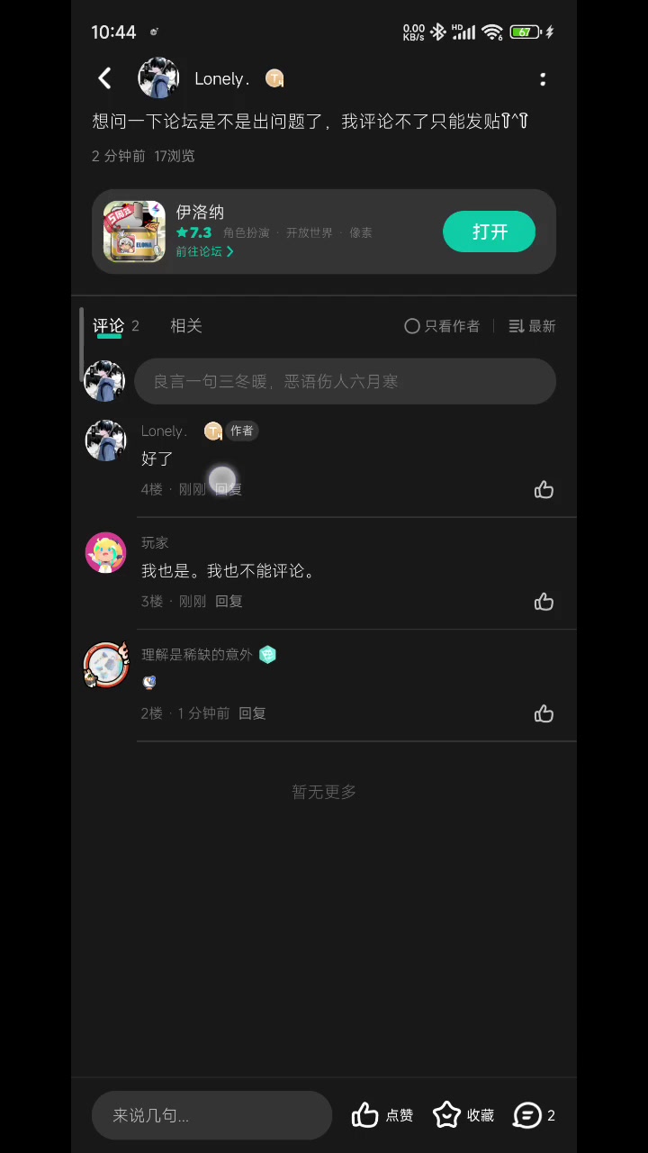 经过两天的思考斗争,我还是咬咬牙选择毁号,杜绝回游的念想。 我累了,不再像以前那样,对这游戏充满热情,有精力去游玩了,我不想线上和线下都要上班。 我没有动力再去玩这游戏,与我现实因素和个人因素有关,我没有后悔玩这游戏......只是,该结束了,以前游玩的日子如缥缈云烟,对于现在的我而言,再玩下去只是折磨,我还是尽早删号把仅剩一点美好回忆留在心里吧。 伊洛纳的冒险家们,你们继续加油。