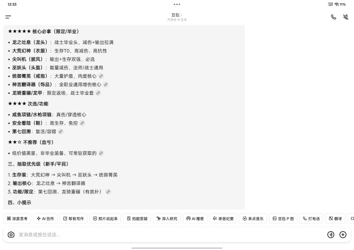 不知道应该抽什么装备【比如什么限定装备】,大佬们指点一下下~然后以太还要动嘛?【3头,5手,3指,1腰,1脚】肢体需不需要重生呀~神迹装备有二阶三尺,一阶戒指,一阶尖锐,零阶法杖,秘宝有六级星河了。然后主手只有554w伤害。现在在缓慢搞裂隙天赋点了~