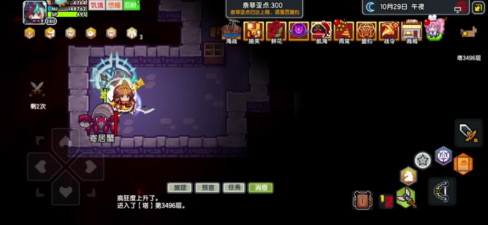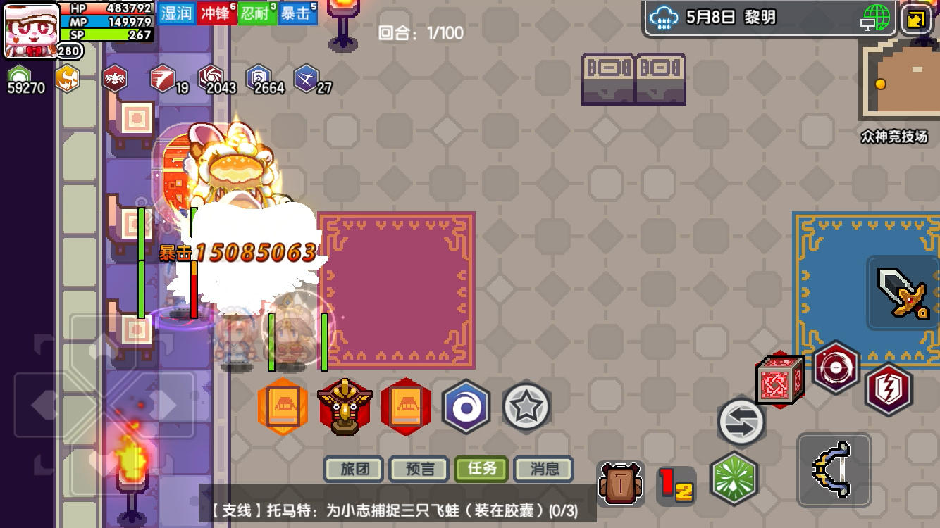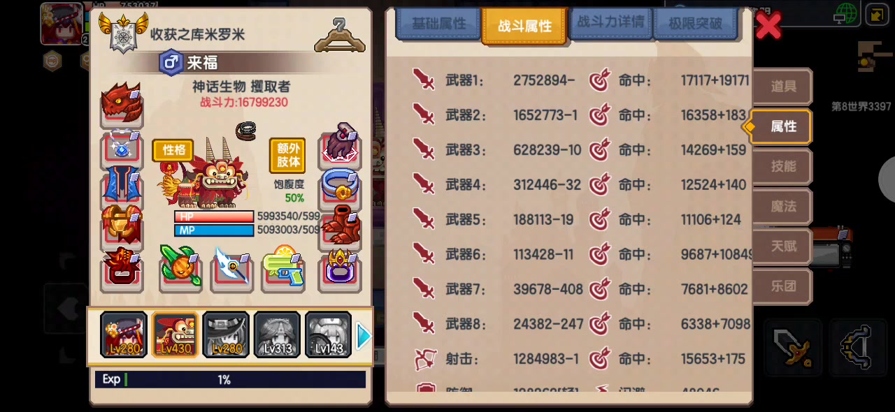 幻沙刚刚压级完,牵出来溜溜,装备直接扒冰法的装备(魔力1050,感知410,魔修610),直接可以逛3499了……