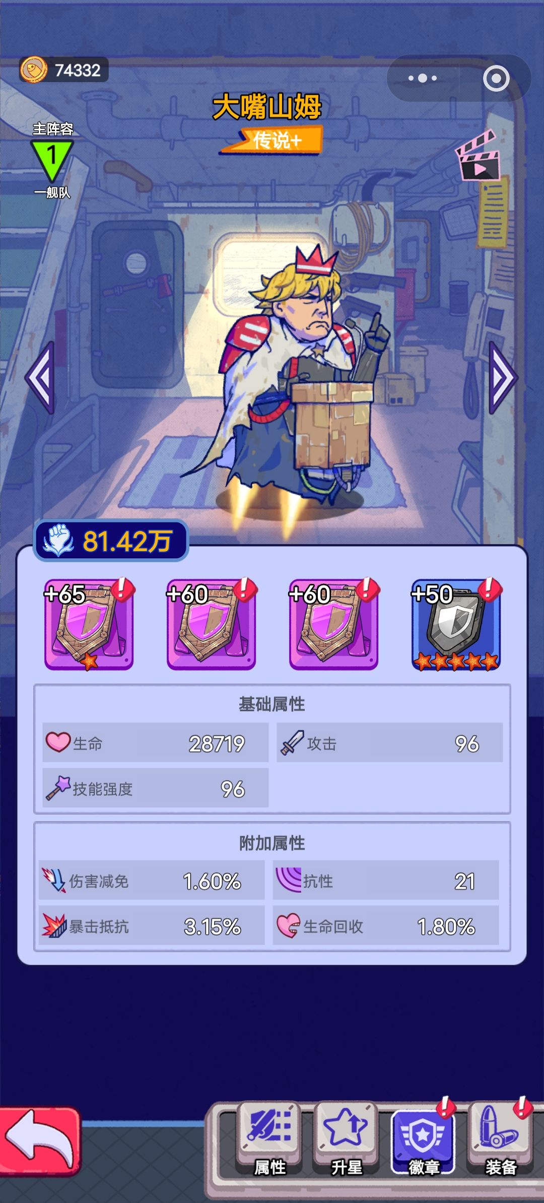 S1的强力角色有大帝,兰博,侃爷,大嘴,蜜雪儿,小丑,钩子。 大帝:红卡,配合兰博的攻速可以做到战场乱串,极度恶心人的卡,也是改变战局和越战的卡。 兰博:C,核心C,核心辅助,输出和辅助全能的卡,要不是黄卡属性低,这卡目前可以排名这游戏第一卡。不管你氪度多少都必须养。 侃爷:辅助卡,前期三星可用,很香的加攻速和暴击并免疫开局钩子。 大嘴:前期最肉的坦克,反伤可以忽略,推图核心,打架核心。 小