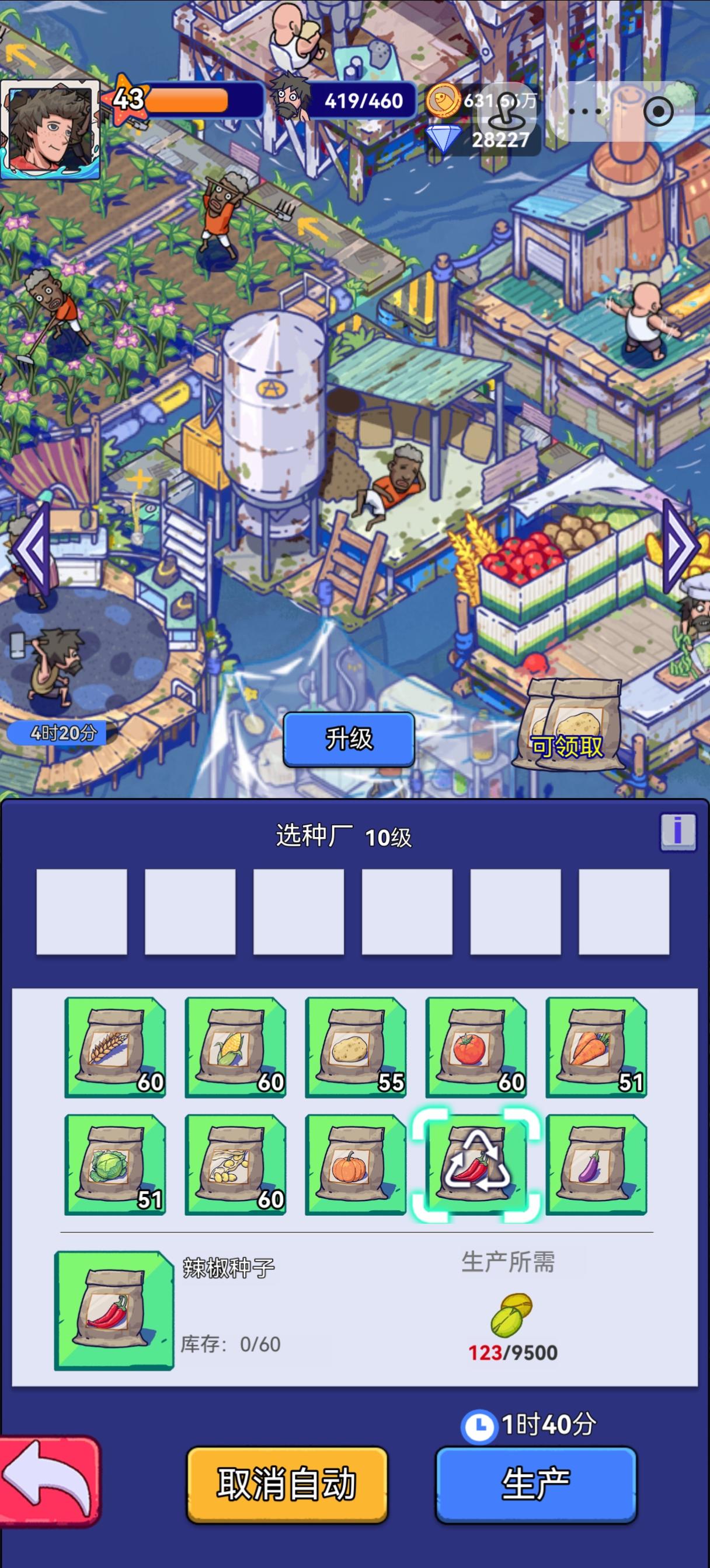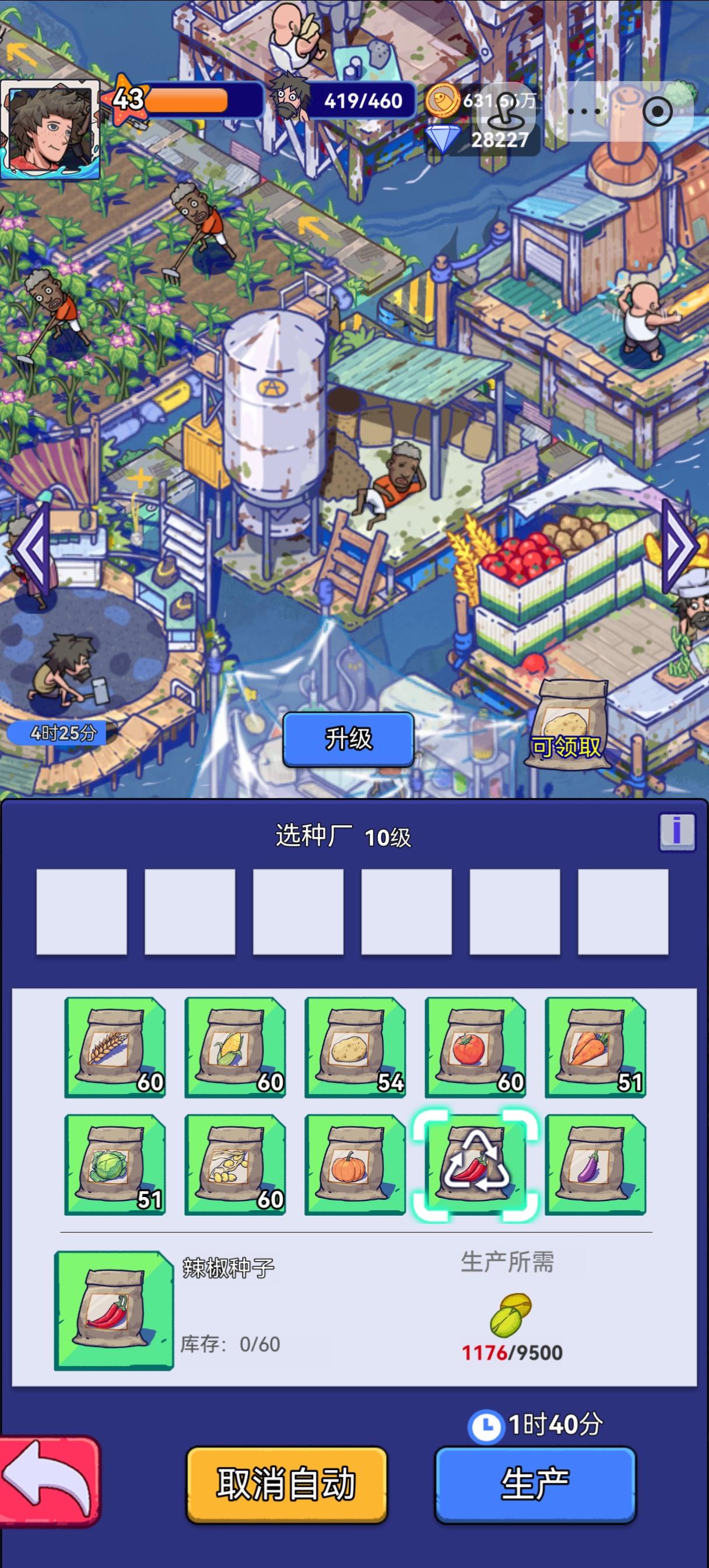 种子厂有bug,游戏的自动生产是当自动生产目标资源不够会先去生产其他资源充足的产品,但是种子厂不一样,用的资源都是种子,如果资源不够的话,那自动生产就会从第一个开始生产,直到前面的种子全部都满了才会开始生产想要的种子,关键就算是满了前面的又会种植,种植完之后又会去其他工程生产,后面的种子比如辣椒茄子可能一天都生产不出来一个。目前只能关闭自动种植和自动生产,不然种子厂玩不了了。