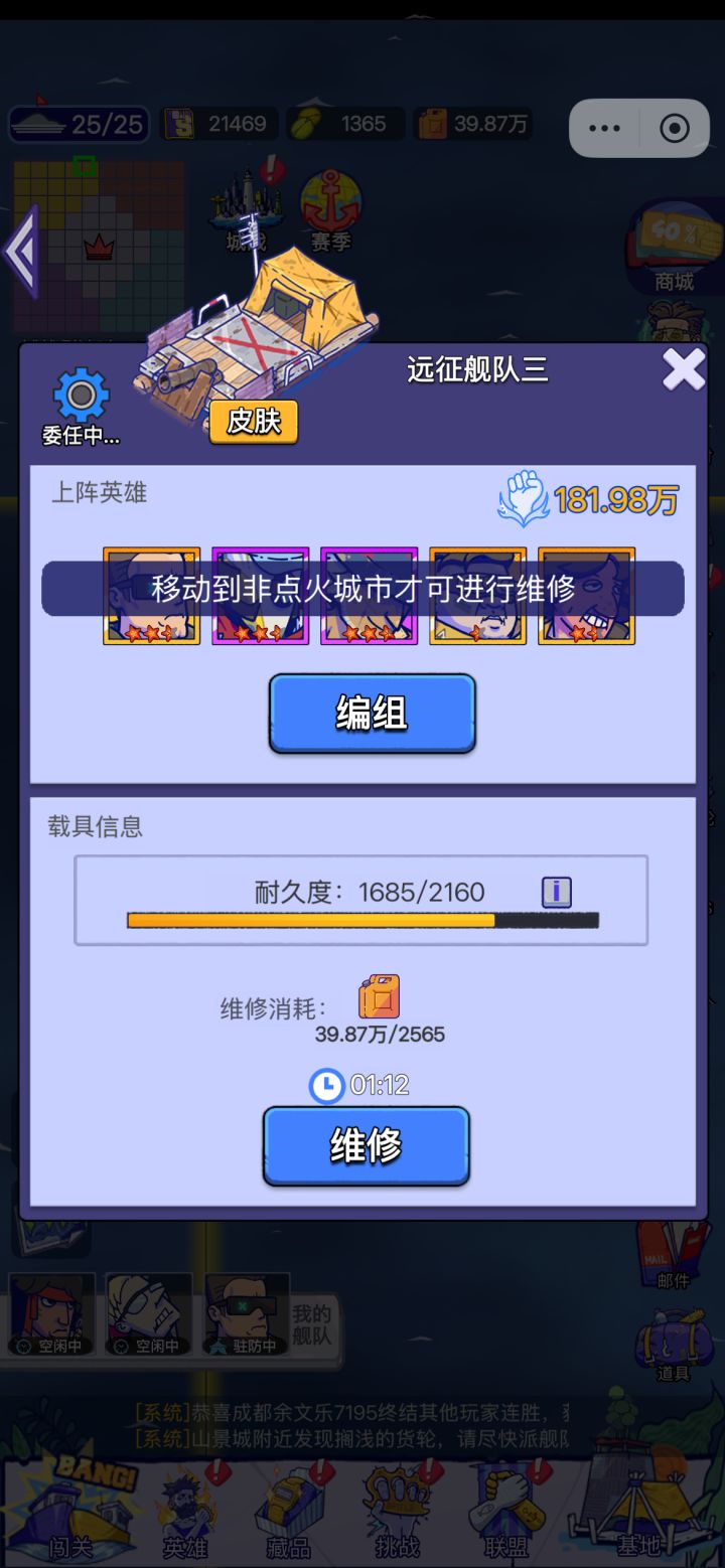 如图第三队一直显示驻防中,但是点头像定位到这个边边,怎么撤回啊,好几天了