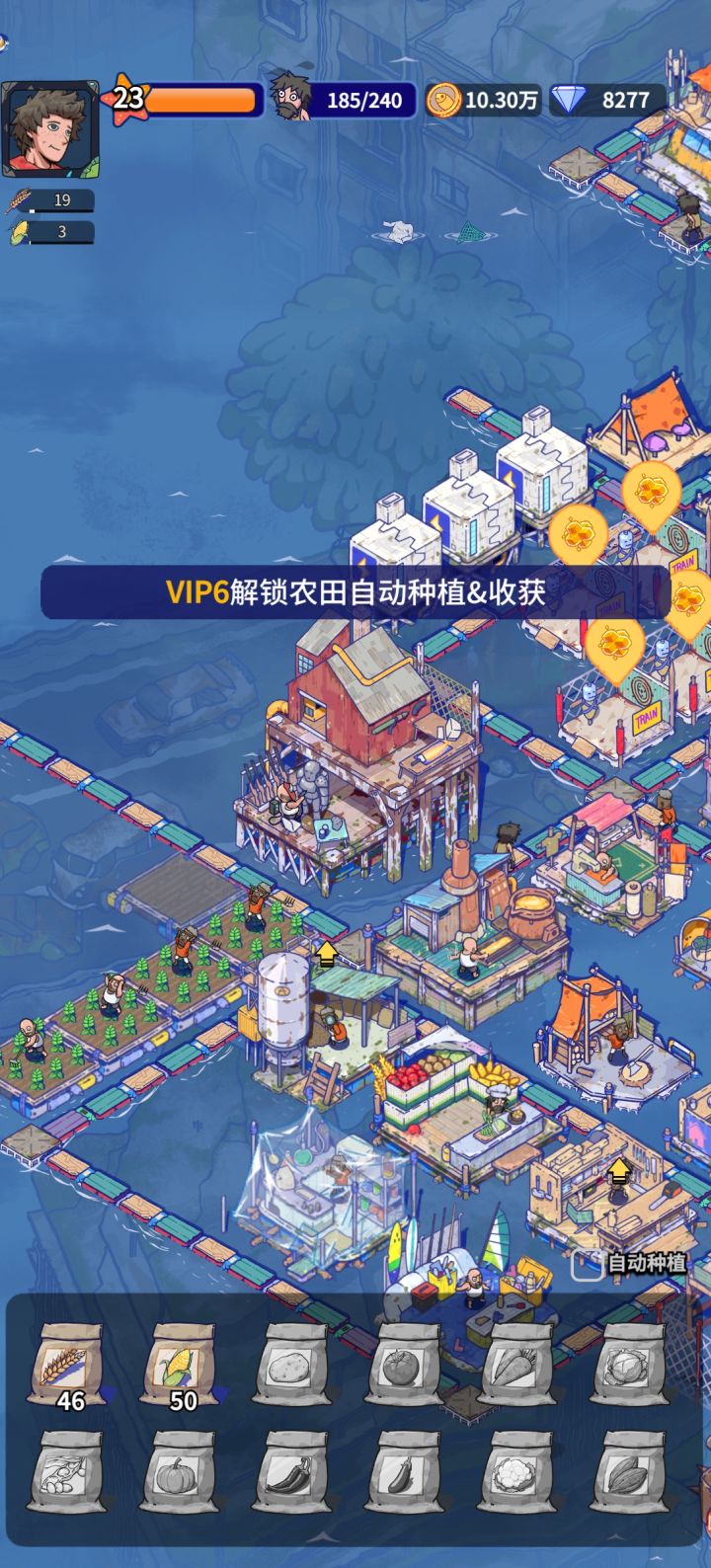 12块钱开的自动生产,玩了一会儿,感觉还挺方便,不用频繁上线手动添加生产物品。结果没玩多久,又出了农田,必须手动添加农作物。小麦30分钟一熟,必须半个小时上一次线,农田的自动种植和收获必须开VIP 6。真是太溜了
