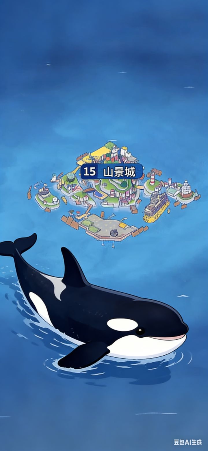 区服:海岛1850服ID:130926994676360角色名:充错号了以下内容及图片由豆包AI生成。- 视觉核心:以庞大虎鲸托举山景城为主体,虎鲸一半在海面、一半隐于水下,展现坚实可靠的守护感;城市保持原有布局与“山景城”标识,强化游戏IP辨识度。- 氛围营造:用深蓝海面与虎鲸黑白配色形成对比,结合自然鲸鱼喷水效果,传递“海洋巨兽守护人类城邦”的史诗感与安全感。- 叙事逻辑:虎鲸不仅