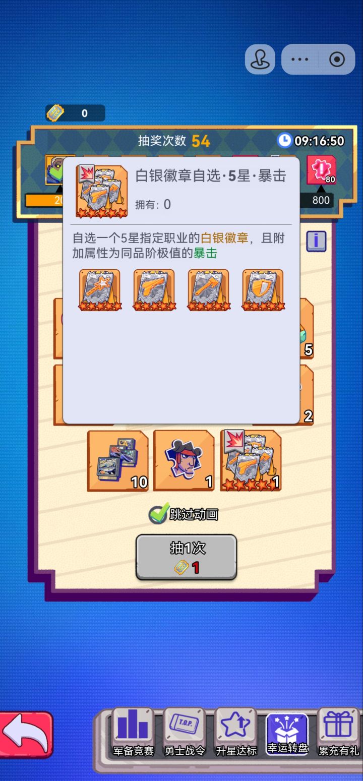 如题,周活动的暴击徽章一般多少抽能出呀?#兰博 #疯狂水世界