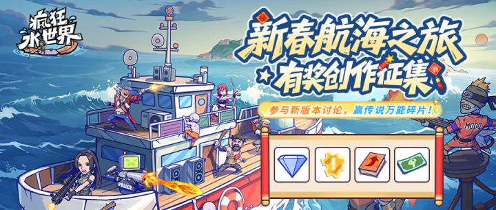新春将至,万象更新。水世界也即将迎来一年中最热闹、最温暖的节日!诚邀老大们化身水世界航海记录官,用镜头与文字,定格属于您的独家春节记忆,将那份最浓的“年味”分享给全体航海家!无论是城战的热血对决、盟友间的深厚情谊,还是新春活动的高分秘籍,每一个瞬间都应该被记录。老大可以前往《疯狂水世界》TapTap论坛,点击【航海征集】版块参与发帖哦~