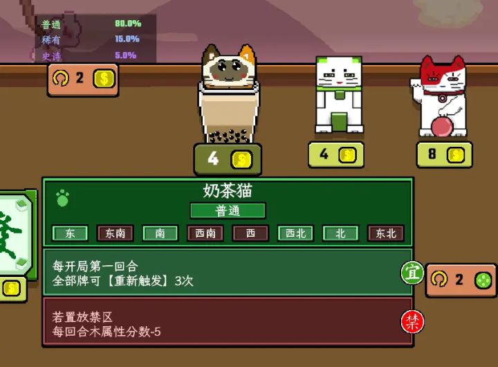 这游戏画面看着挺普通的,甚至有点复古的粗糙感,但肉鸽养成 + 轻麻将策略的结合,玩着超有深度!