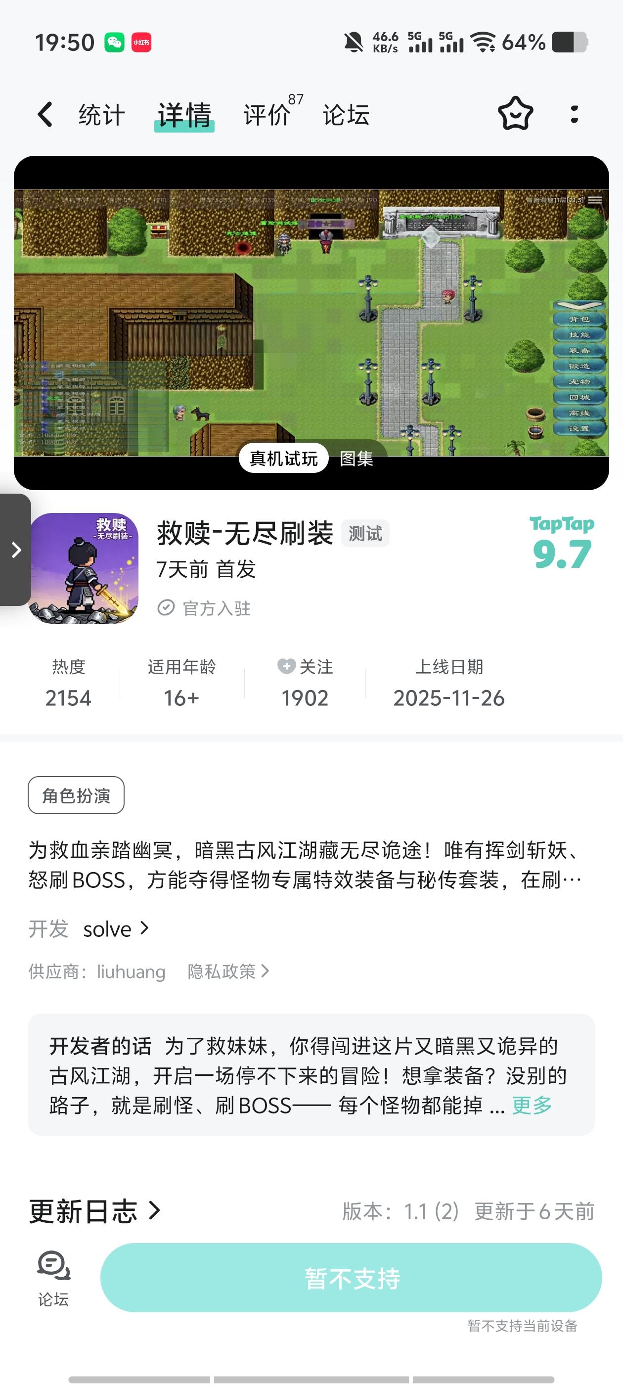刚进游戏感觉游戏还可以,游戏画面非常复古,有点像原来耍过那种RPG游戏,也希望大家多多支持哈