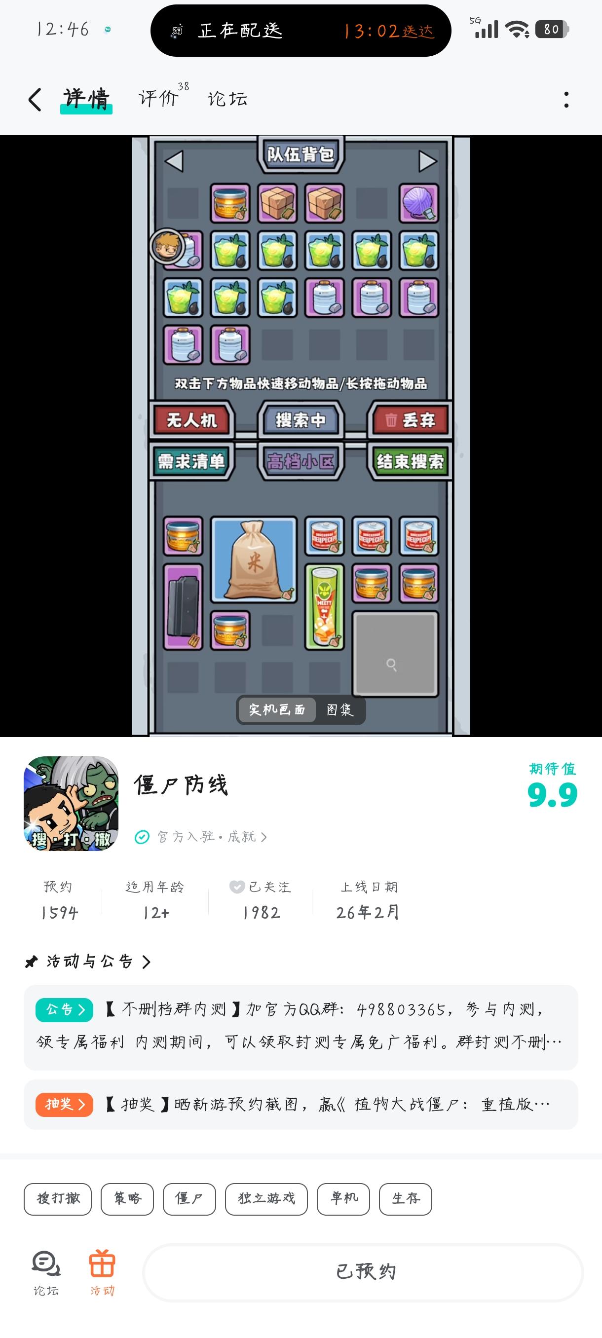 内测期间,可以领取封测专属免广福利。群封测不删档,且可以和制作人交流游戏内容,提出建议以及自己想法,共同打造塔防搜打撤新游。搜打撤+大战僵尸!收集物资,抵御僵尸,开车撤离!【官方群】内测参与方式:加入官方交流群官方群(会于近期在群内率先开启小规模封测):498803365点击链接加群: