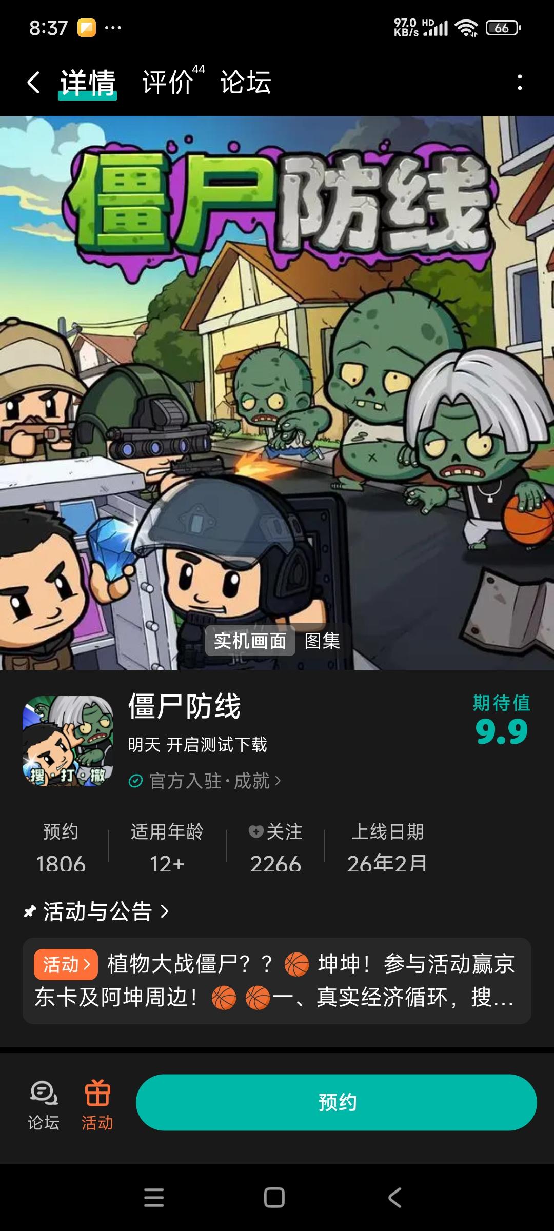 【测试公告】感谢你们对《僵尸防线》的耐心等候与支持!《僵尸防线》不删档测试即将1月22日11:00开放下载进入🧭【测试信息】开放下载周期:1月22日 11:00(实际时长可能会有所偏差)测试形式:限量不删档计费测试平台:TapTap;1月22日 11:00起,点击下载按钮,下载完毕并用Tap账号注册游戏,即可参与本次测试,数量有限先到先得!📱 【末日卫星】加入玩家交流QQ群:498