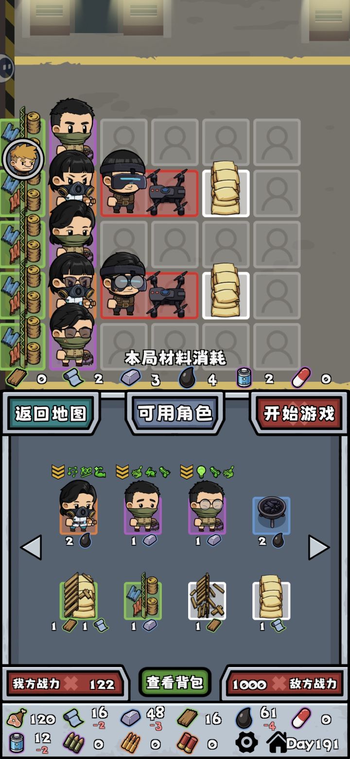 这个游戏巨简单,有手就行,我的建议是除了能够升级的物资跟基础物资还有红可以留着,后面完全没啥用,因为收藏室有个要求,就是只能在避难所(通关后直升机进的图)里面的收藏室才能用,就是只要收集基础跟升级物资就行,其他没啥用,这个游戏不需要攻略,只需要知道攒够基础物资就行,后面完全不需要阵容,2个无人机,3猎2药随便通关,有无人机=通关一个无人机打法就是5猎,5药随便打,里面汽油最重要,前期打不过的关卡