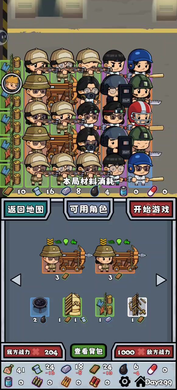 这个游戏巨简单,有手就行,我的建议是除了能够升级的物资跟基础物资还有红可以留着,后面完全没啥用,因为收藏室有个要求,就是只能在避难所(通关后直升机进的图)里面的收藏室才能用,就是只要收集基础跟升级物资就行,其他没啥用,这个游戏不需要攻略,只需要知道攒够基础物资就行,后面完全不需要阵容,2个无人机,3猎2药随便通关,有无人机=通关一个无人机打法就是5猎,5药随便打,里面汽油最重要,前期打不过的关卡