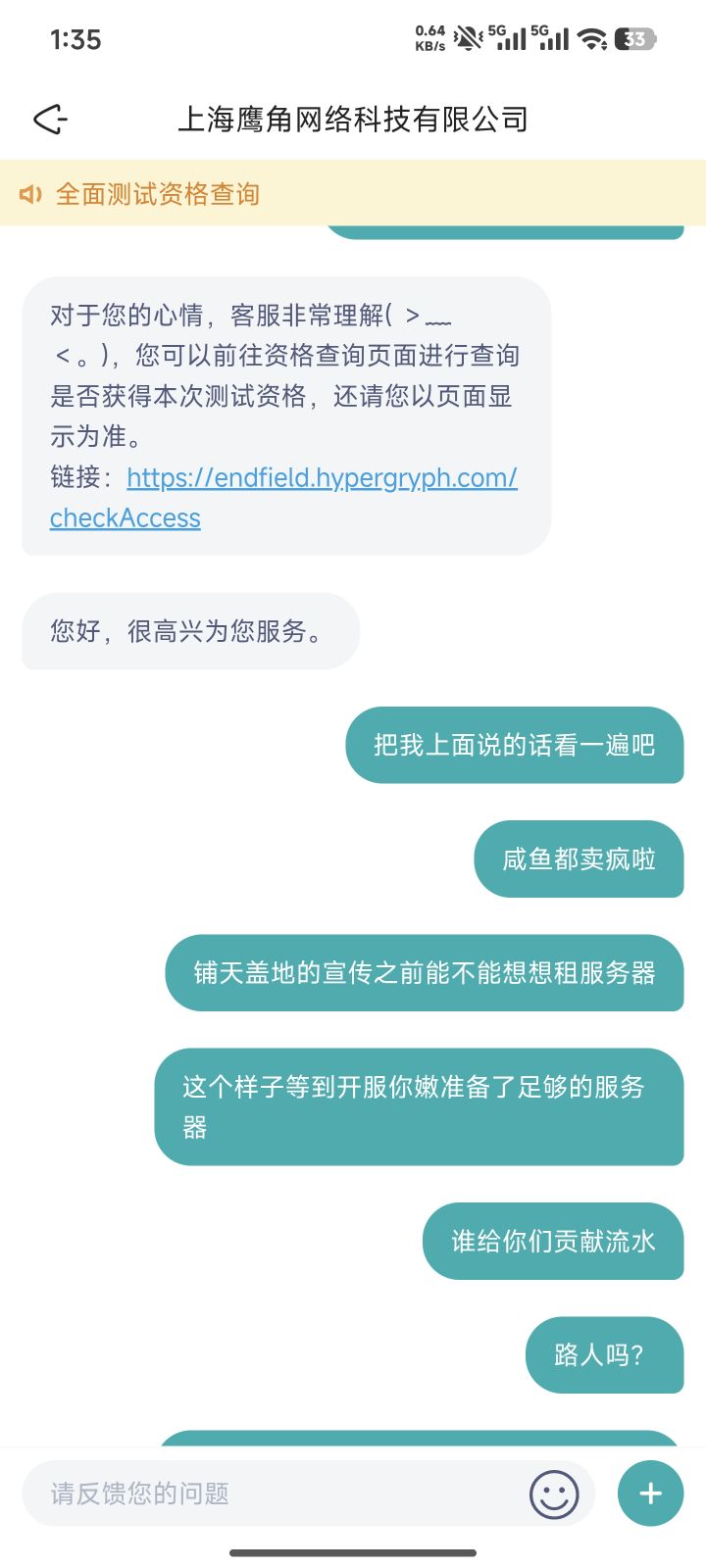 #明日方舟终末地全面测试 鹰角对《明日方舟:终末地》的运营操作,早已把“消耗情怀”刻进了骨子里。一边打着“全面测试”的旗号拉高期待,一边把测试资格压缩到2%-5%的中签率,比单抽出金还难,嘴上说着“严禁交易资格”,转头就让闲鱼上的黄牛把付费测试资格炒到天价,那些带着充值返利的名额,没流向坚守多年的老玩家,反倒成了黄牛手里的敛财工具——这种“官方禁售、黄牛泛滥”的诡异景象,很难不让人怀疑背后是否存