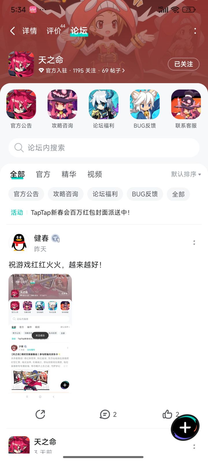 天命者集结!奇幻异世界、科幻星球、东方仙域百位英雄跨时空汇聚,精灵法师、机械战士、修仙剑客同台竞技,每位英雄都有专属剧情,等你揭开上古之谜,守护梦幻大陆!TapTap 社区专属福利来袭,简单参与赢京东卡,快来成为幸运天命者👇🎁 活动奖励抽取1 位幸运玩家,赠送京东卡1 张📝参与条件1.点击预约《天之命》并发新帖晒截图2.在本帖下方评论区分享发帖链接即可⏰奖品发放到达开奖时间后,由t