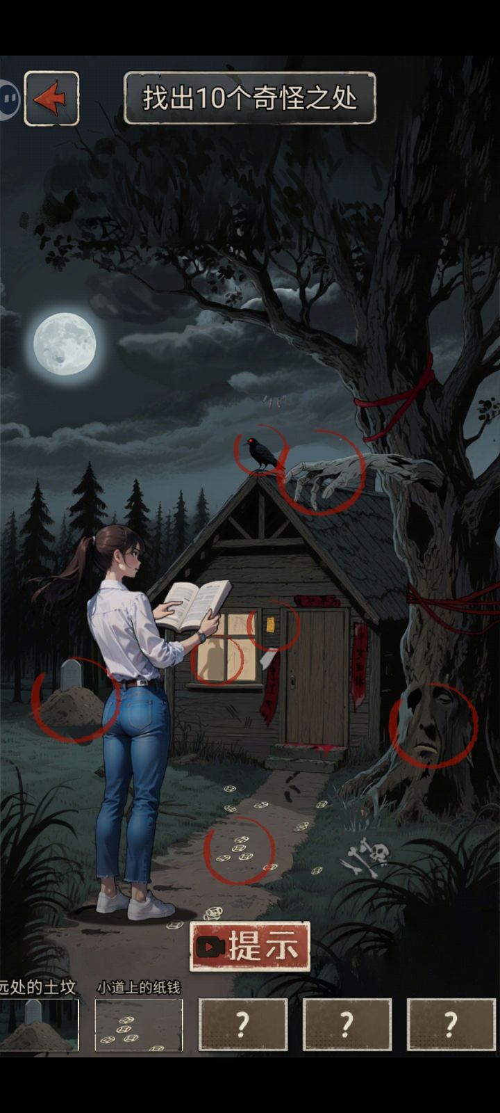 玩法规则在很多小游戏中很常见,找到画面中的异常之处即可,一关有十个异常之处,大部分点击即可发现,少部分需要用到滑屏、多次点击等操作,最后的2-3个异常比较难找,没玩过的话大概率要看广告获得提示信息。没做基础操作介绍,这类轻度小游戏基本也不需要,可以很快上手。