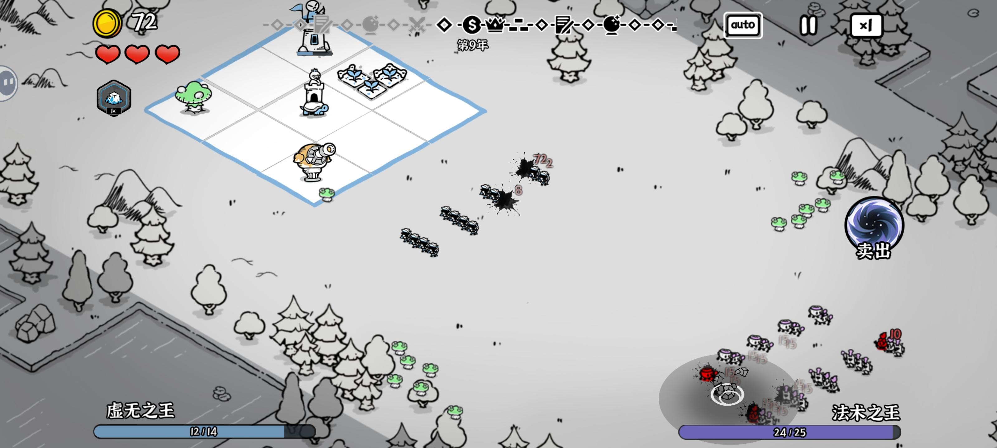 画面看着挺简约,有那种养成肉鸽的爽感,就是关卡流程有点短,好不容易养起来了,就到boss通关了,没有彻底的爽,不过来说还挺不错的,希望多出些新的国王,出无尽模式