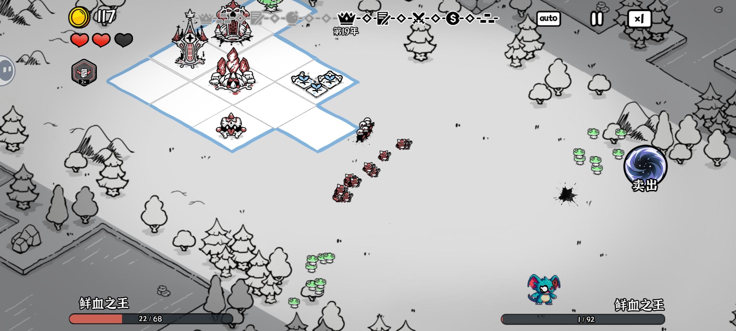 模型展示错误,中间那个塔应该是相单位死亡召唤小鬼,攻击方式是小鬼的但模型是自爆兵的,还有对方王也是无论什么展示的都是这个大象