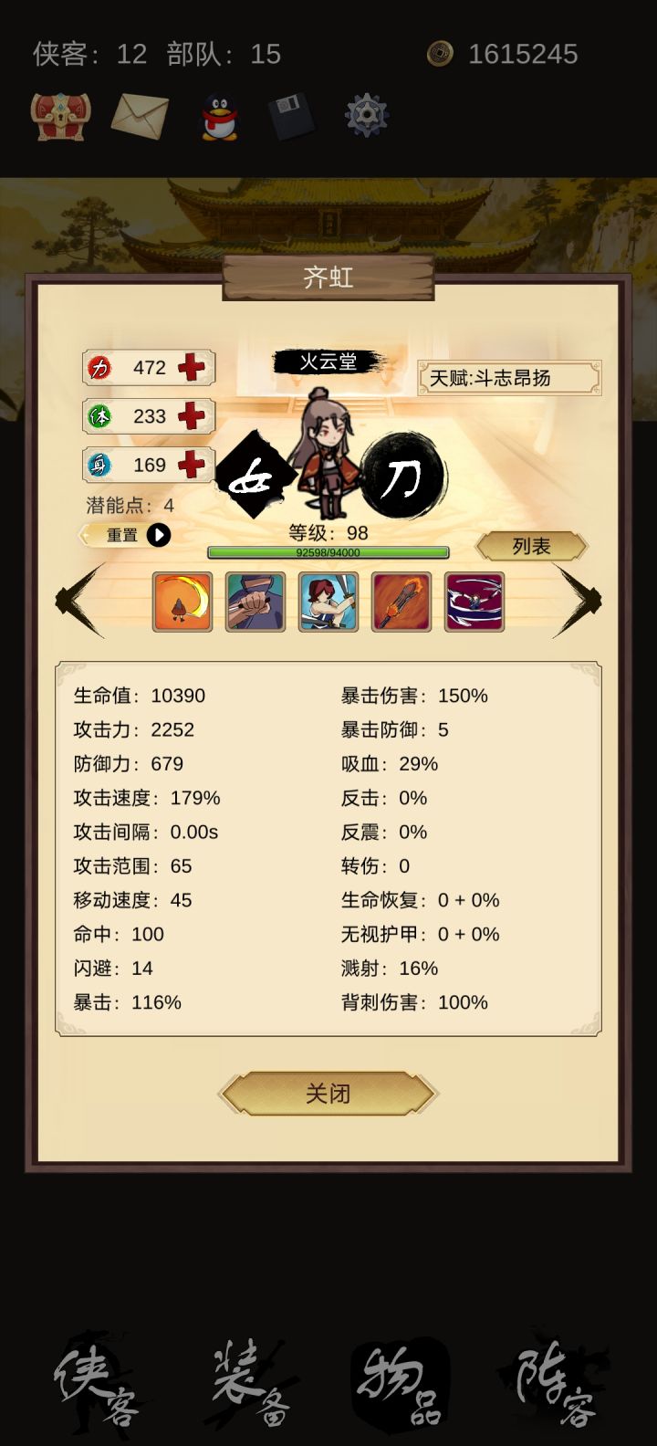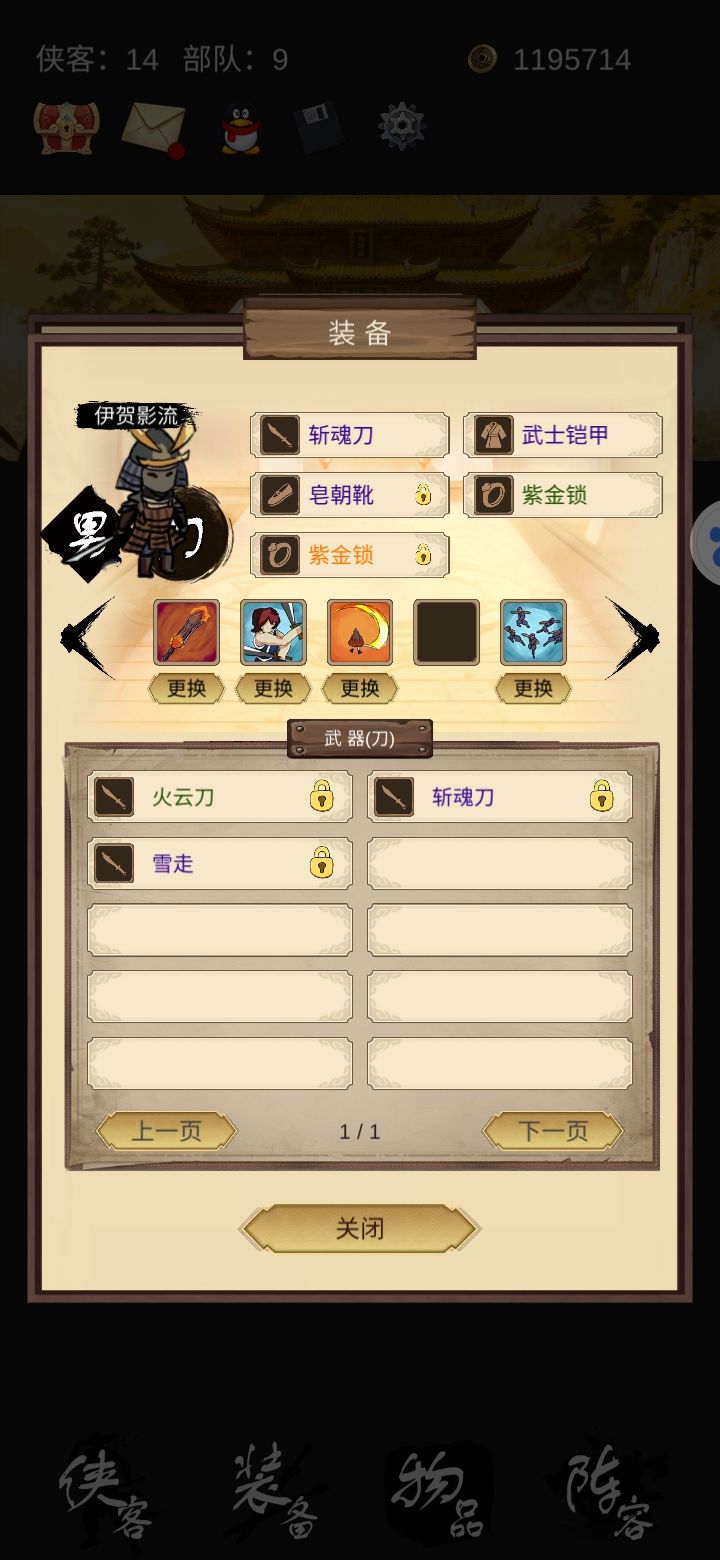 刚开始玩,很容易卡40-60,这很正常,也是游戏的正式开始!前期建议是从一开始好好养和尚,前期是真的好用,卡关就去挂五派联盟,缺金币去挂38关,目标是换血刀老祖和唐秋,不换不养也是可以的,养了好过度,毕竟初始几个角色是真的刮痧,把等级挂上去,刷傀儡宗,傀儡信物,换修罗刀法,修罗双刀决,圣火令(三秒不死)火阳刀法 凑齐后,就是要打甲贺信物,换分身术了,有之前换的刀法,用命去堆过去等每个都配上分