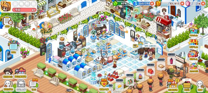 游戏的主线就是使用金币💰让送货员进货,购买货架使用能量⚡️上货获得经验,卖出货物挣取利润,升级之后可以解锁更多产品和装饰主题,还有在好友家摆摊获得经验、金币、能量,购买生产建筑制作自己的商品卖出,为好友救货、与好友比拼销售额等等模块…总之是一个比较复杂庞大的游戏。总结一下优点缺点吧。