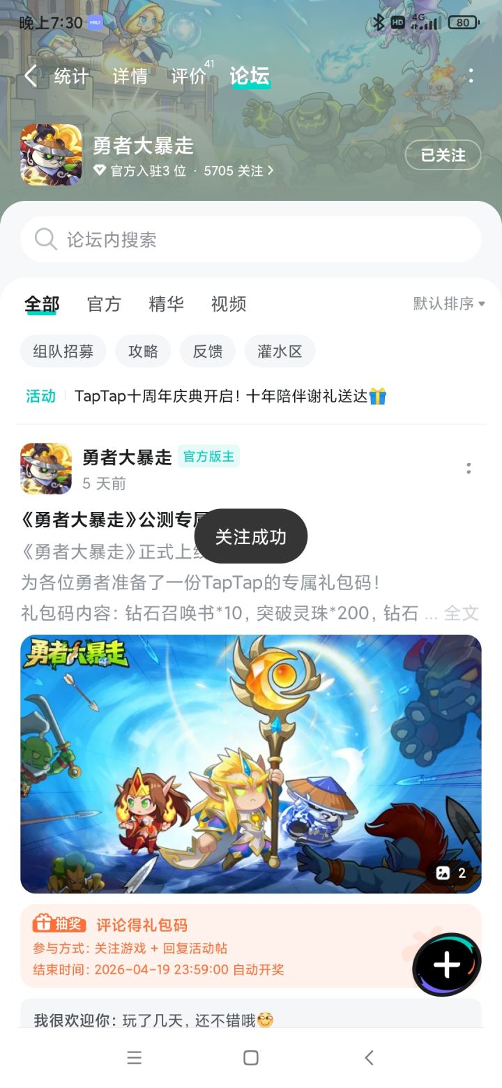 《勇者大暴走》正式上线这次的「勇者测试」已开启,点击即可下载>>>>参与晒图活动即可抽取京东卡好礼!「游戏礼包分享」YZDBZ999*礼包领取方式:游戏主界面-点击头像-设置-兑换礼包码-邮箱点击领取「问题反馈」联系客服QQ:3574628668【参与方式】1.关注《勇者大暴走》且发新帖晒游戏内截图(自带水印)2.在本帖下方评论区分享发帖链接即可【活动时间】即