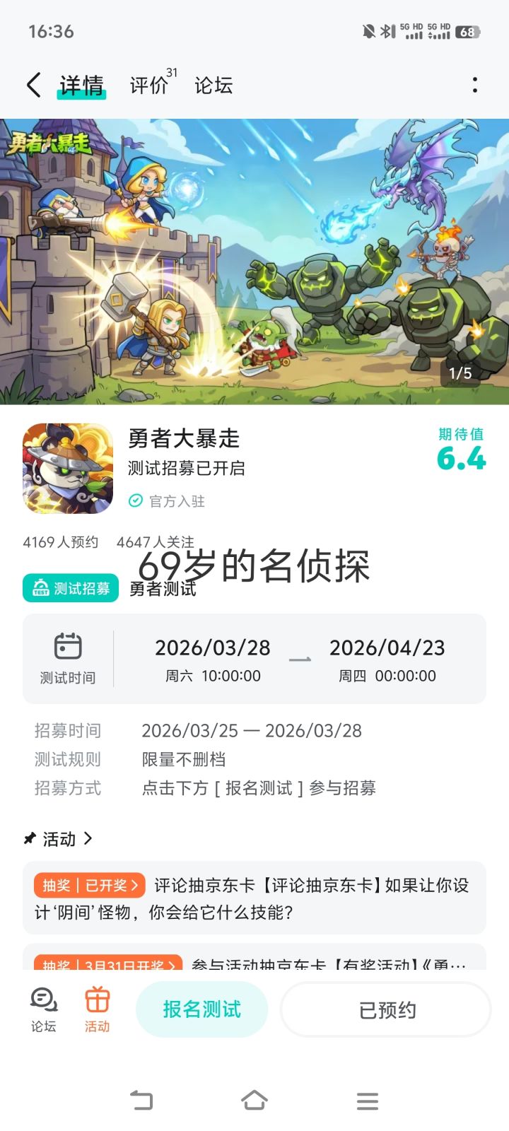 已关注,预约,期待一下勇者大暴走上线,希望勇者大暴走越来越好,蒸蒸日上,人气超多。