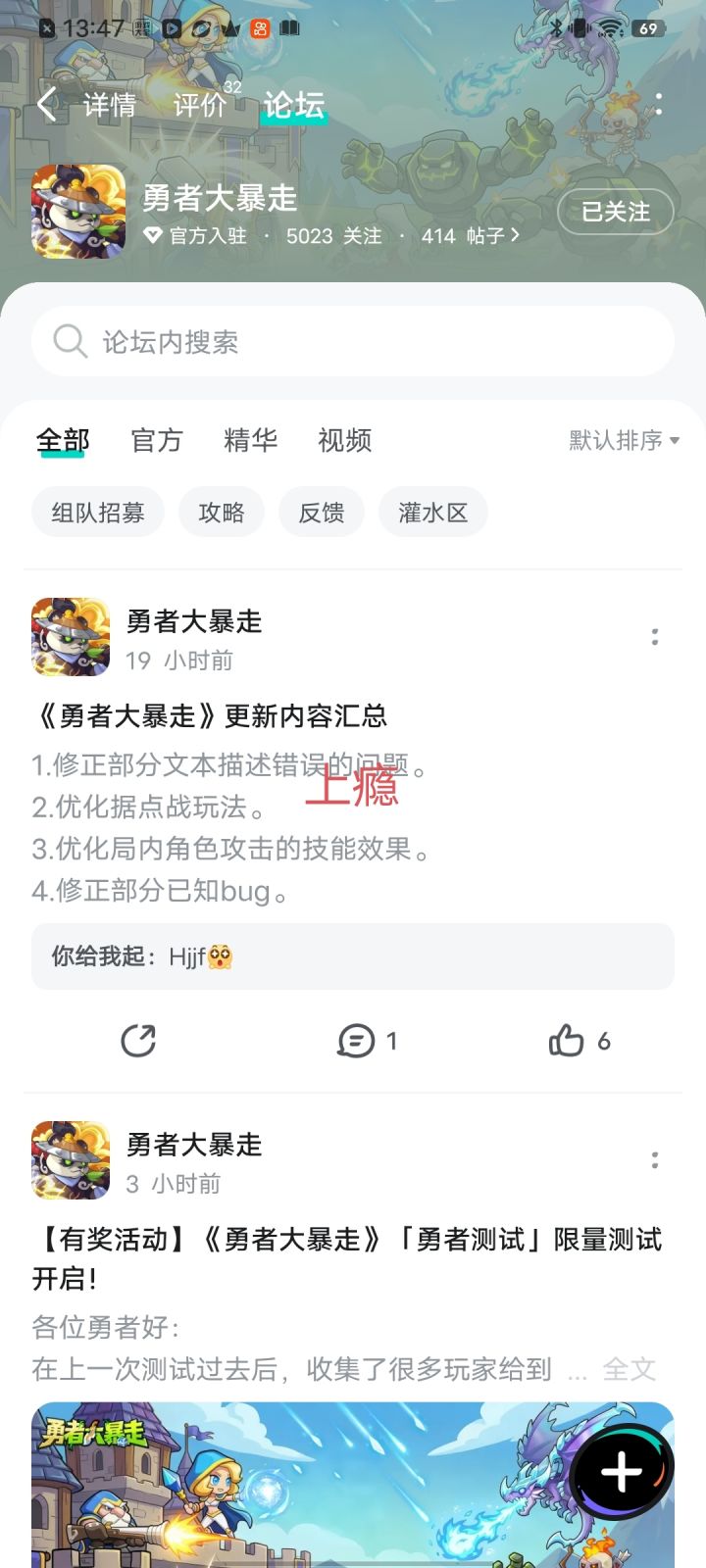 各位勇者好:在上一次测试过去后,收集了很多玩家给到的修改意见和优化调整建议,在做了一次漫长的优化和筛查之后,《勇者大暴走》带着更新走来啦。这次的「勇者测试」报名招募已开启,点击即可参与招募>>>>【参与方式】1.关注《勇者大暴走》且发新帖晒截图(自带水印)2.在本帖下方评论区分享发帖链接即可【活动时间】即日起~2026年3月31日23:59【活动奖励】京东卡,共3份【注意事项】