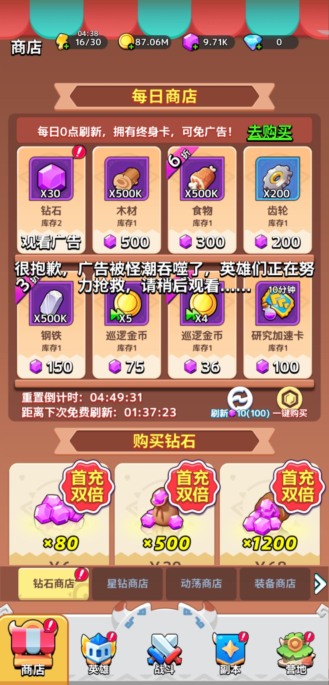 广告全都看不了,这算什么意思?逼玩家买终生卡?