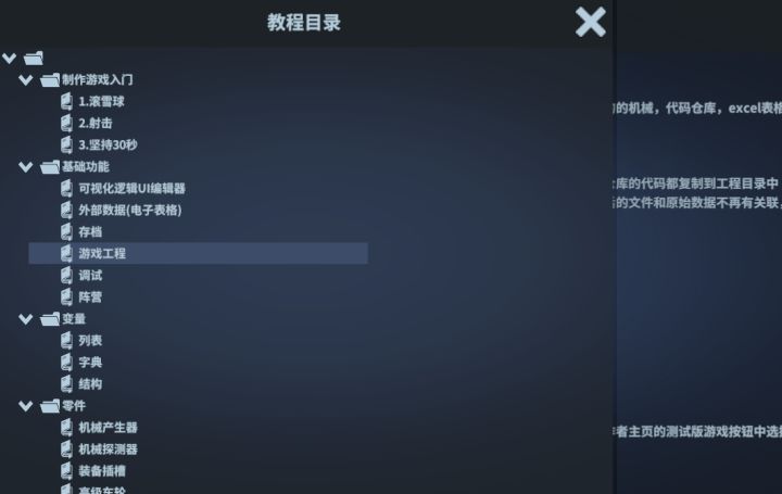 首先要打开游戏开发者模式:在主界面右上角打开设置面板勾选“游戏开发者模式”然后就可以看到“切换开发者模式”按钮了点击官方教程按钮就可以打开教程了最新版本官方教程已经内置到游戏中,需要什么方面详细讲解的可以在下面跟帖