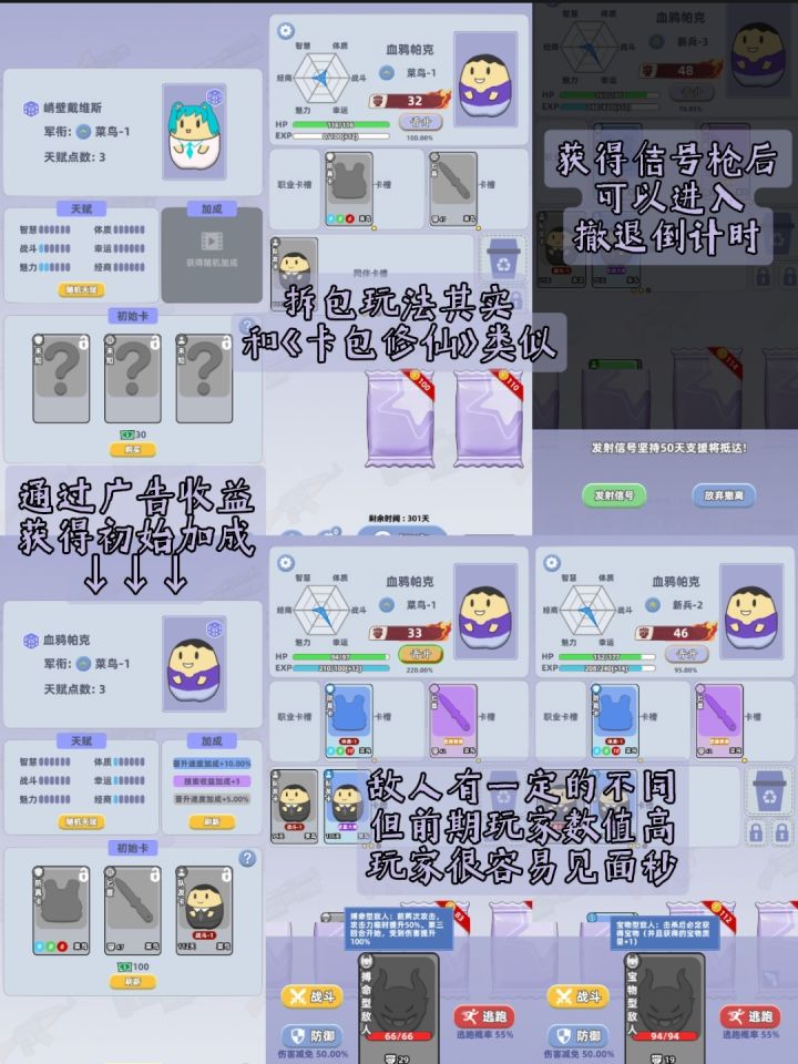 和卡包修仙一样的开卡包类型游戏,但收打撤不是虚假宣传。作为休闲娱乐的单机游戏,已经算是很不错了。
