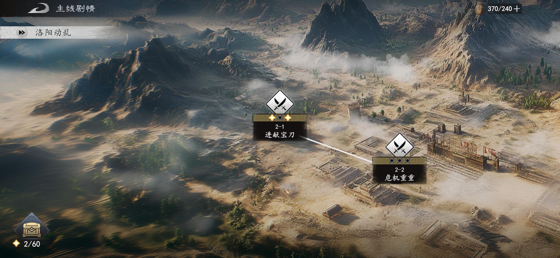 2-1进献宝刀追杀关,本来想试一下吕布AI的强度,结果发现吕布不会追你,这个时候你就可以回头去打吕布,他不会做出任何还手动作直接在关卡口任你宰割了。