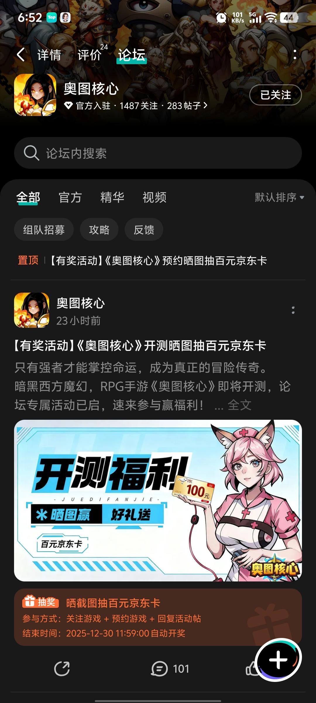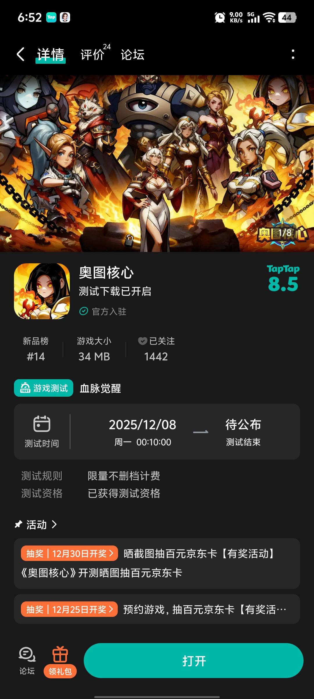 只有强者才能掌控命运,成为真正的冒险传奇。暗黑西方魔幻,RPG手游《奥图核心》即将开测,论坛专属活动已启,速来参与赢福利!发新帖晒截图,赢取百元京东卡好礼【参与方式】1.点击关注《奥图核心》并发新帖晒截图2.在本帖下方评论区分享发帖链接即可【活动时间】即日起至12月30日【活动奖励】随机抽取1名符合参与条件的玩家获得:100元京东卡一张【活动规则】1.内容禁止涉及暴力、色情、