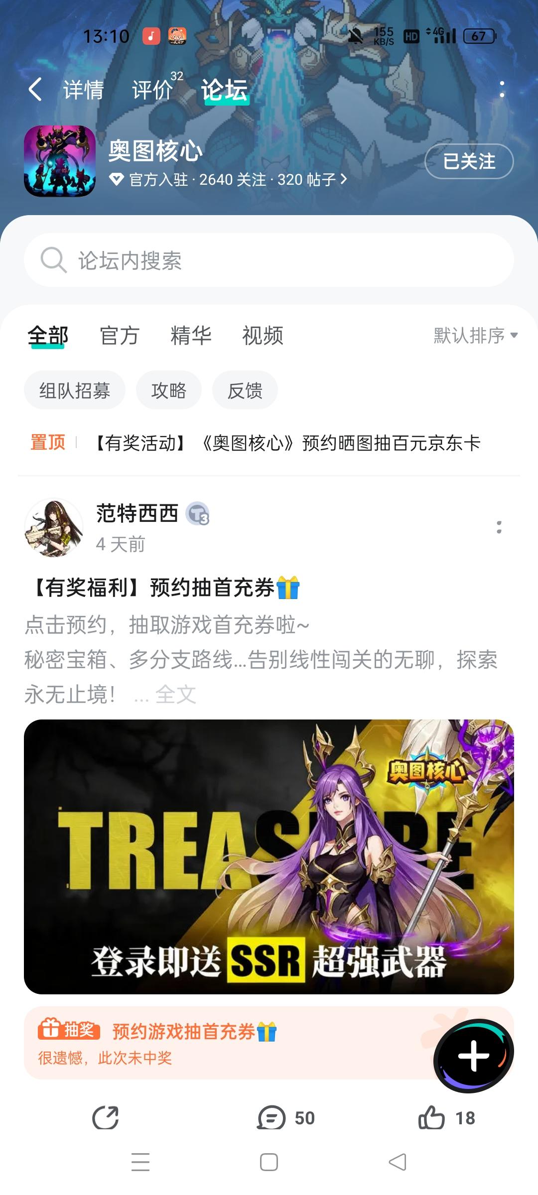 点击预约,抽取游戏首充券啦~秘密宝箱、多分支路线…告别线性闯关的无聊,探索永无止境!【活动奖励】随机抽取10名符合参与条件的玩家获得:首充券*1【参与方式】点击关注游戏测试并回复本帖即可【活动时间】即日起至12月8日【活动规则】1.内容禁止涉及暴力、色情、政治、恐怖内容,违者做删帖处理并取消活动资格;2.回复内容需与活动主题相关,若抽中楼层与主题无关则将取消领奖资格;3.