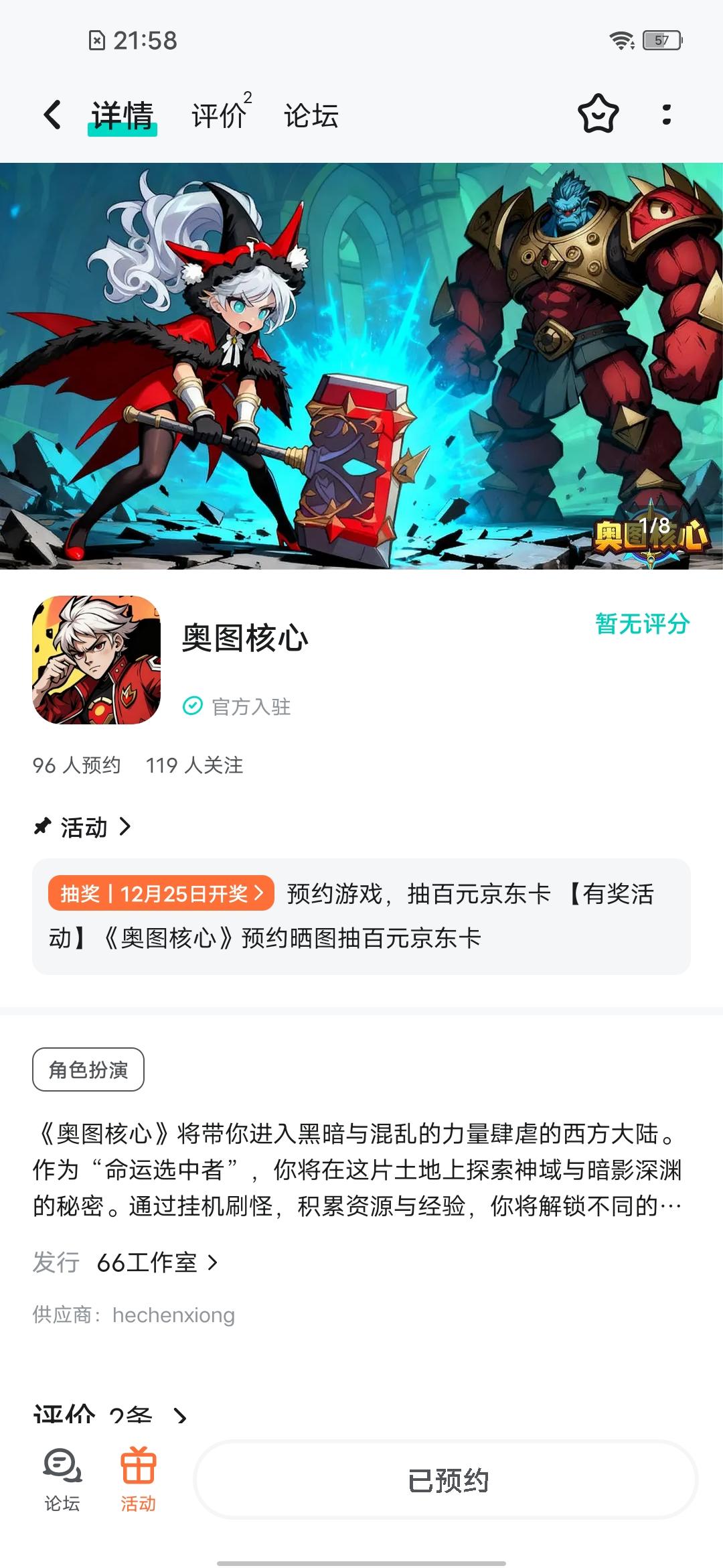 只有强者才能掌控命运,成为真正的冒险传奇。暗黑西方魔幻,RPG手游《奥图核心》即将开测,论坛专属活动已启,速来参与赢福利!发新帖晒截图,赢取百元京东卡好礼【参与方式】1.点击关注《奥图核心》并发新帖晒截图2.在本帖下方评论区分享发帖链接即可【活动时间】即日起至12月30日【活动奖励】随机抽取1名符合参与条件的玩家获得:100元京东卡一张【活动规则】1.内容禁止涉及暴力、色情、