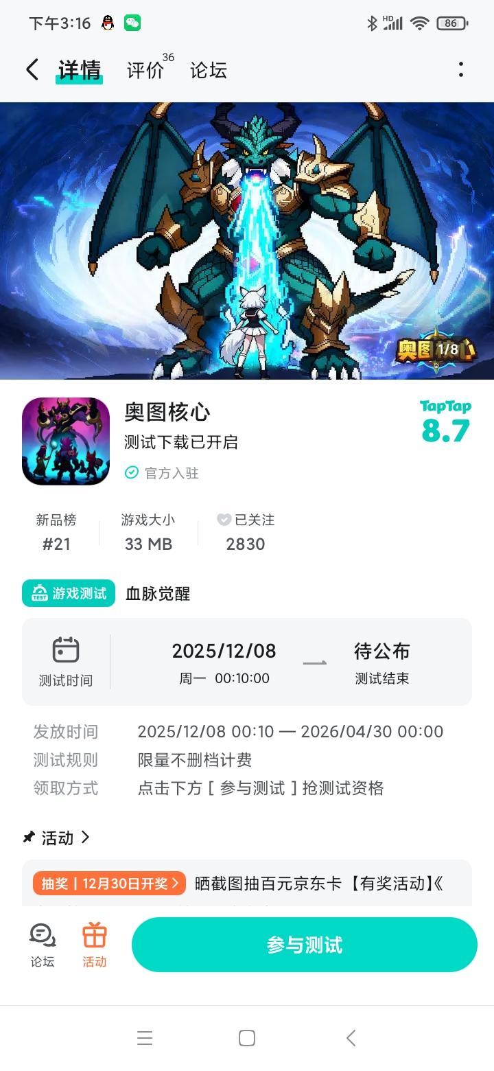 【有奖活动】《奥图核心》开测晒图抽百元京东卡