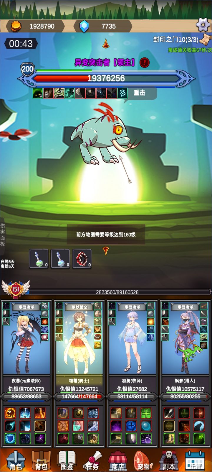 高威胁怪物:乌龟:高血高防带反伤,容易秒掉骑士导致崩盘,骑士带10星以上教会骑士可单防。团子:召唤师,受击概率分裂铺满全场,多段技能散石术、二连击,易造成脆皮职业死亡,牧师、法师建议血量堆到100w以上。狐狸:每隔15s召唤两个分身,多段技能散石术、二连击,应对措施同上。星体:连环锤击aoe外加清buff,拖慢节奏同时考验角色肉度和回复能力。立方:攻击25%概率沉默,配合高输出怪在牧师沉