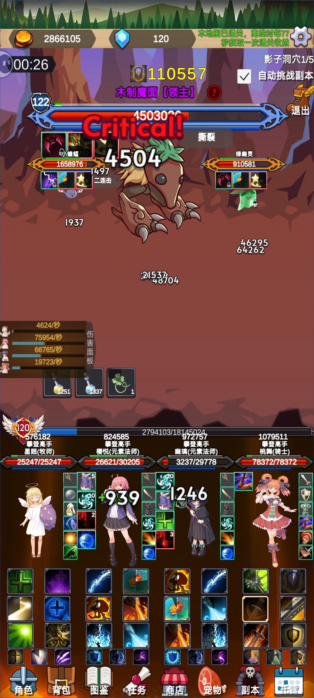 开140级三张图结果一个进门反伤乌龟,一个放毒蘑菇,还有一个死神砍两下把15万血肉盾砍死了,60.100级图换套装的时候好歹能找到地方刷,这140级图根本打不过不说就算未通关挂机三张图都爆一样的装备卡了一天多了挂机经验都升到113了才刷出来4套140