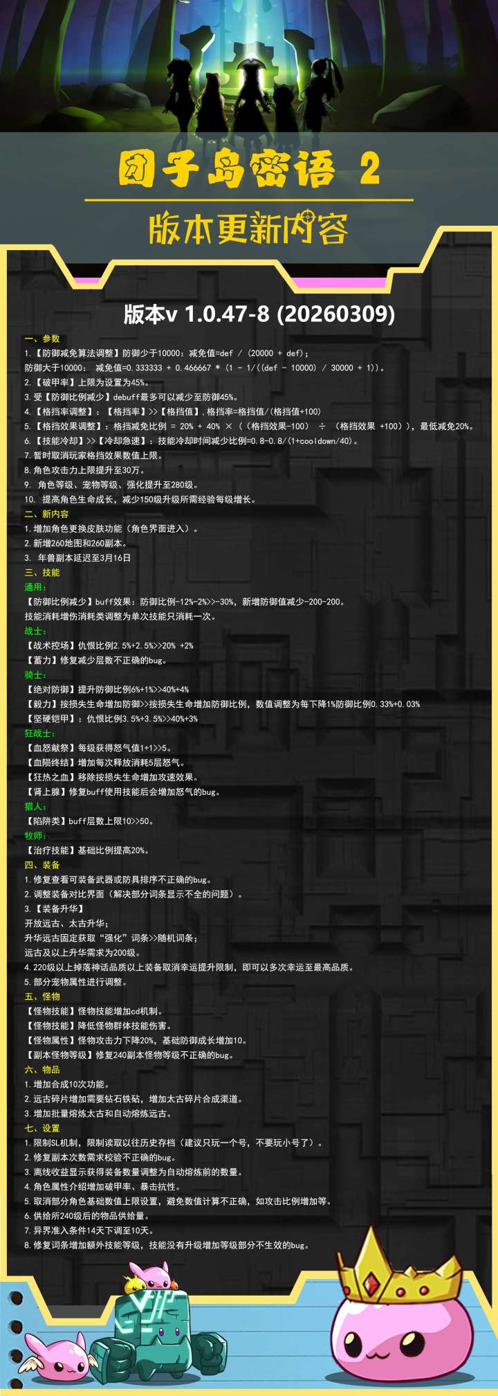 随着版本更新,相信很多小伙伴都被年兽的强大深深控扰,幸亏团子好心,没有给boss添加霸体,那么就有请今天的主角,1.0.42版本削了一次的击退猎——————————————————————击退猎不打伤害,套装意义不大,若你想打伤害……你也打不起来嘿嘿——————————————————————头部:装备参考词条命中、攻速,例如狂血精华:面部:装备参考词条命中、连击率、攻速,例如守望者、狂