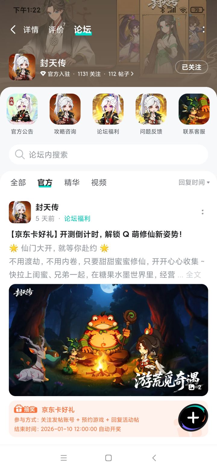 🌟 仙门大开,就等你赴约 🌟不用渡劫,不用内卷,只要甜甜蜜蜜修仙,开开心心收集~快拉上闺蜜、兄弟一起,在糖果水墨世界里,经营属于你的萌系仙途吧!⏰开测时间:2025年12月24日 10:00🎁 开测专属福利:【京东卡抽奖活动】▶ 参与方式1.点击关注发帖账号并预约《封天传》且发新帖晒截图2.在本帖下方评论区分享发帖链接即可【奖品发放】到达开奖时间后,由taptap系统随机抽取符